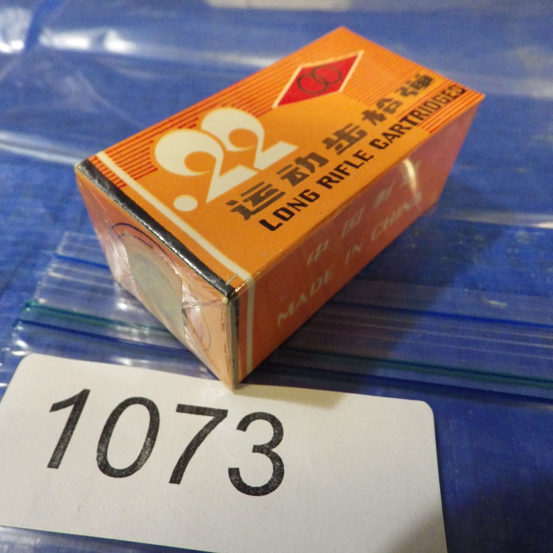 Lot 1073 COLLECTOR BOX OF .22 AMMO -- count and contents not confirmed.