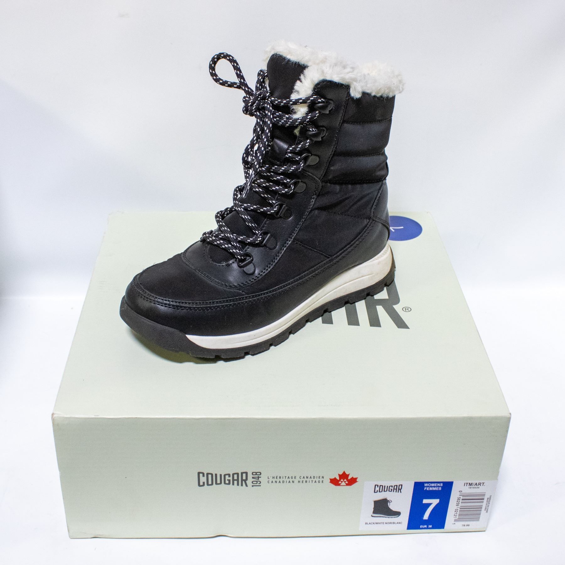Lot 7980 COUGAR WOMENS WINTER BOOTS BLACK & WHITE SIZE 7