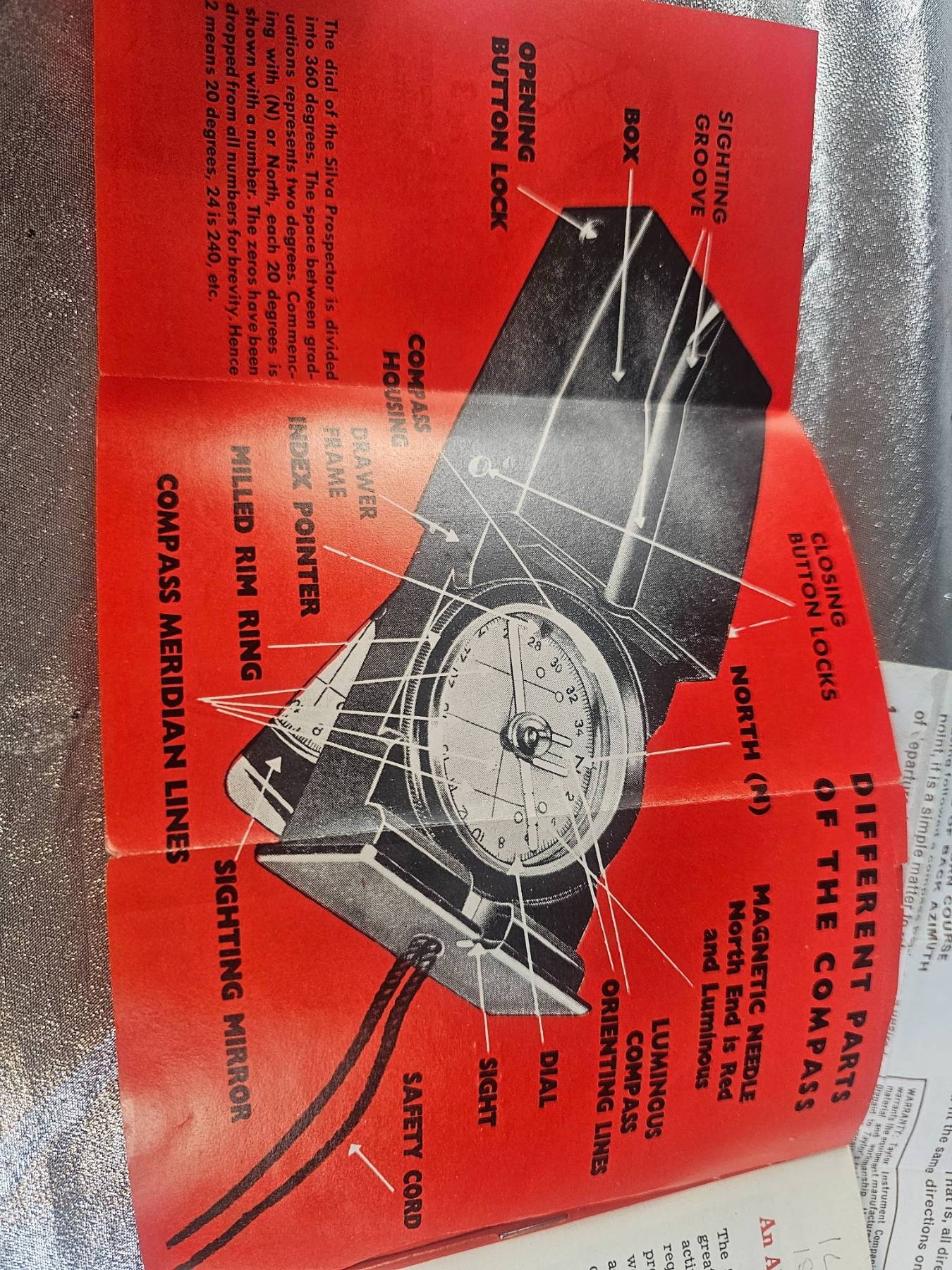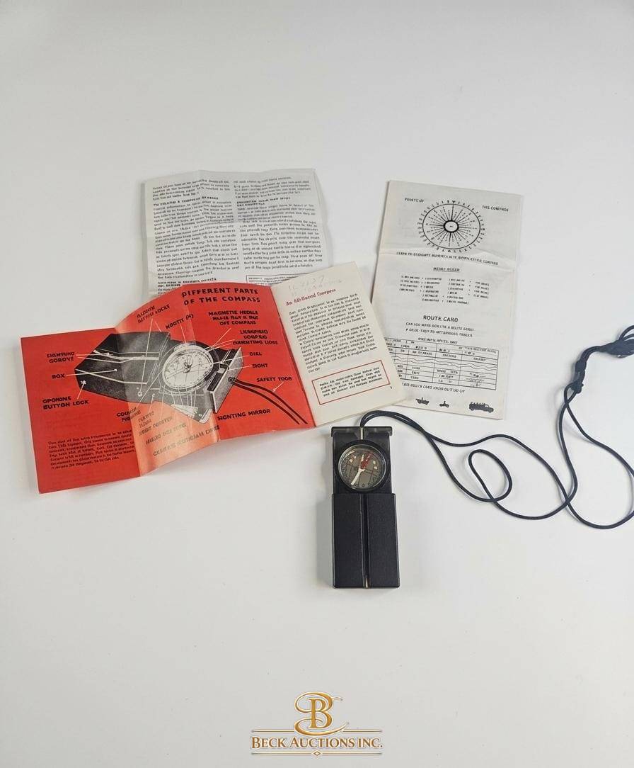 Sunto KB-14 compass featuring a precise compass dial encased in a protective black housing. The set includes the original user manual, detailed instruction leaflets, and diagrams, offering comprehensive guidance for navigation. Compact in size, the compass measures approximately 4 inches in length, making it portable. Ideal for outdoor enthusiasts or collectors of navigation tools.