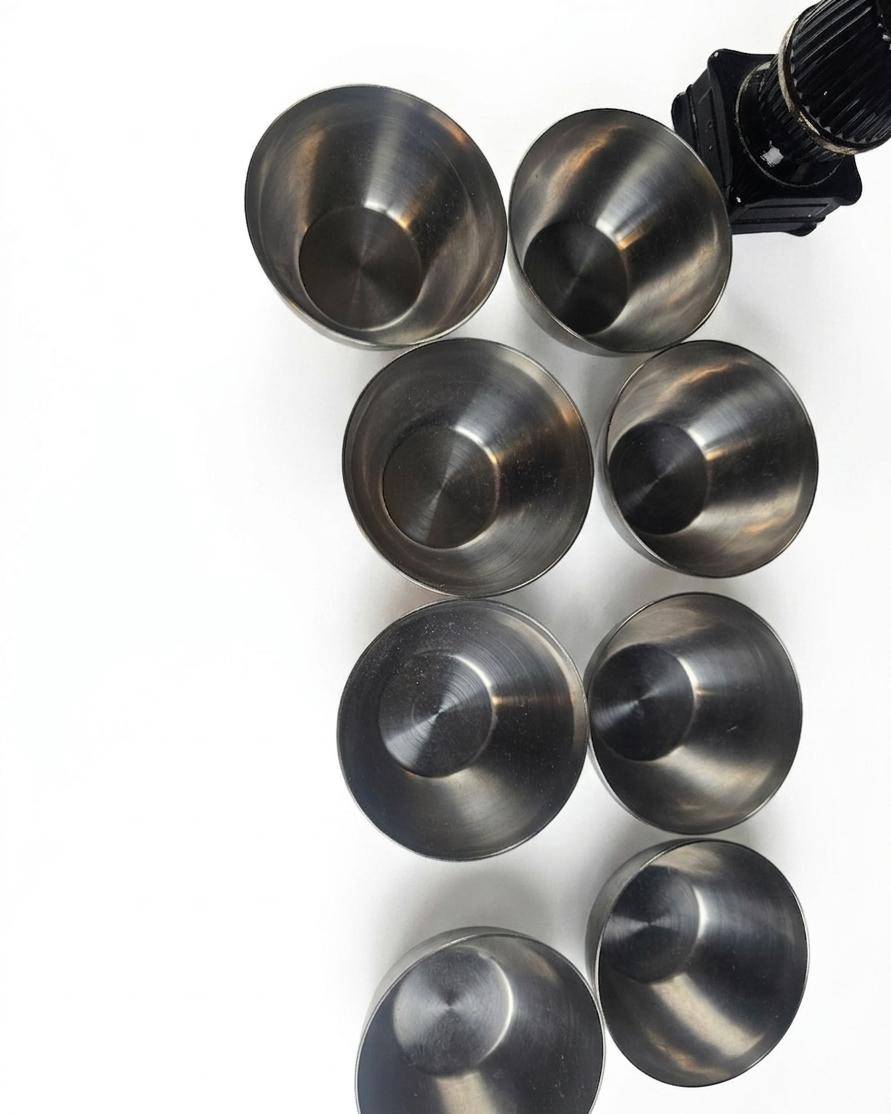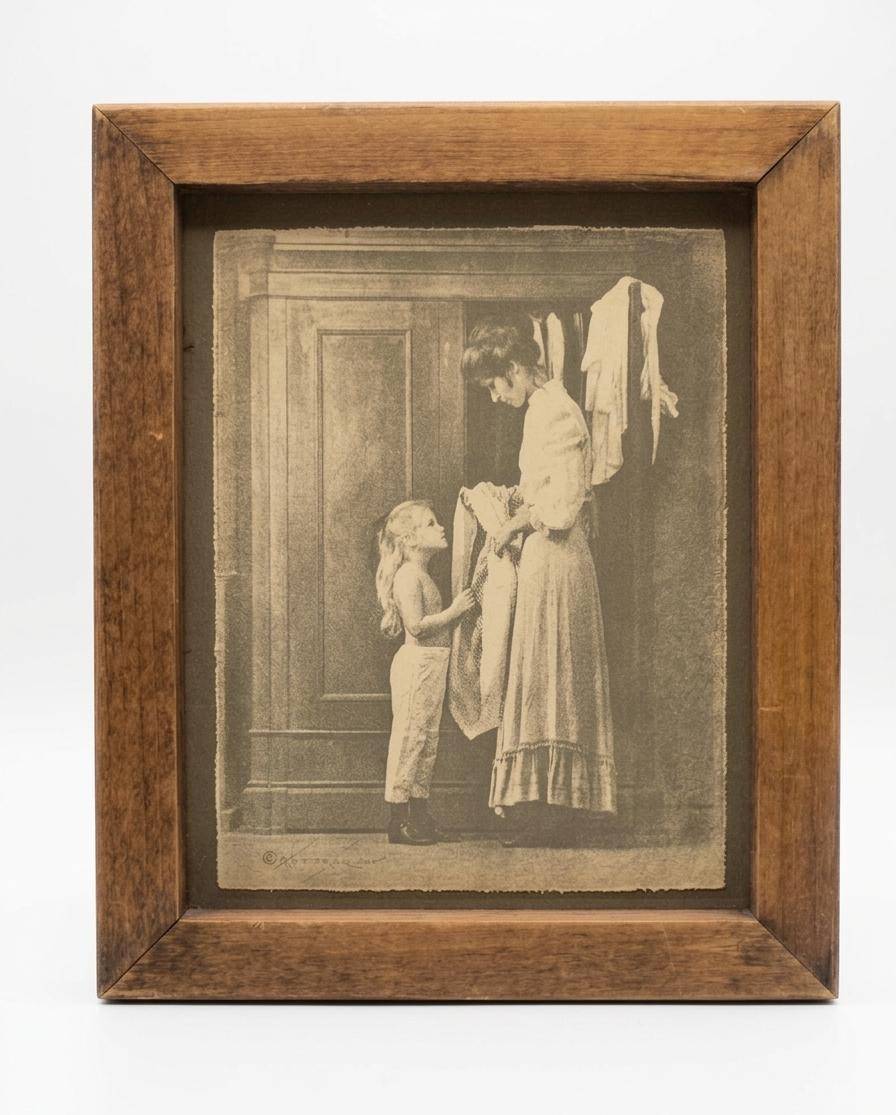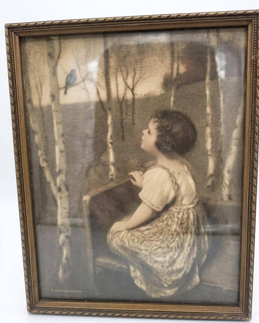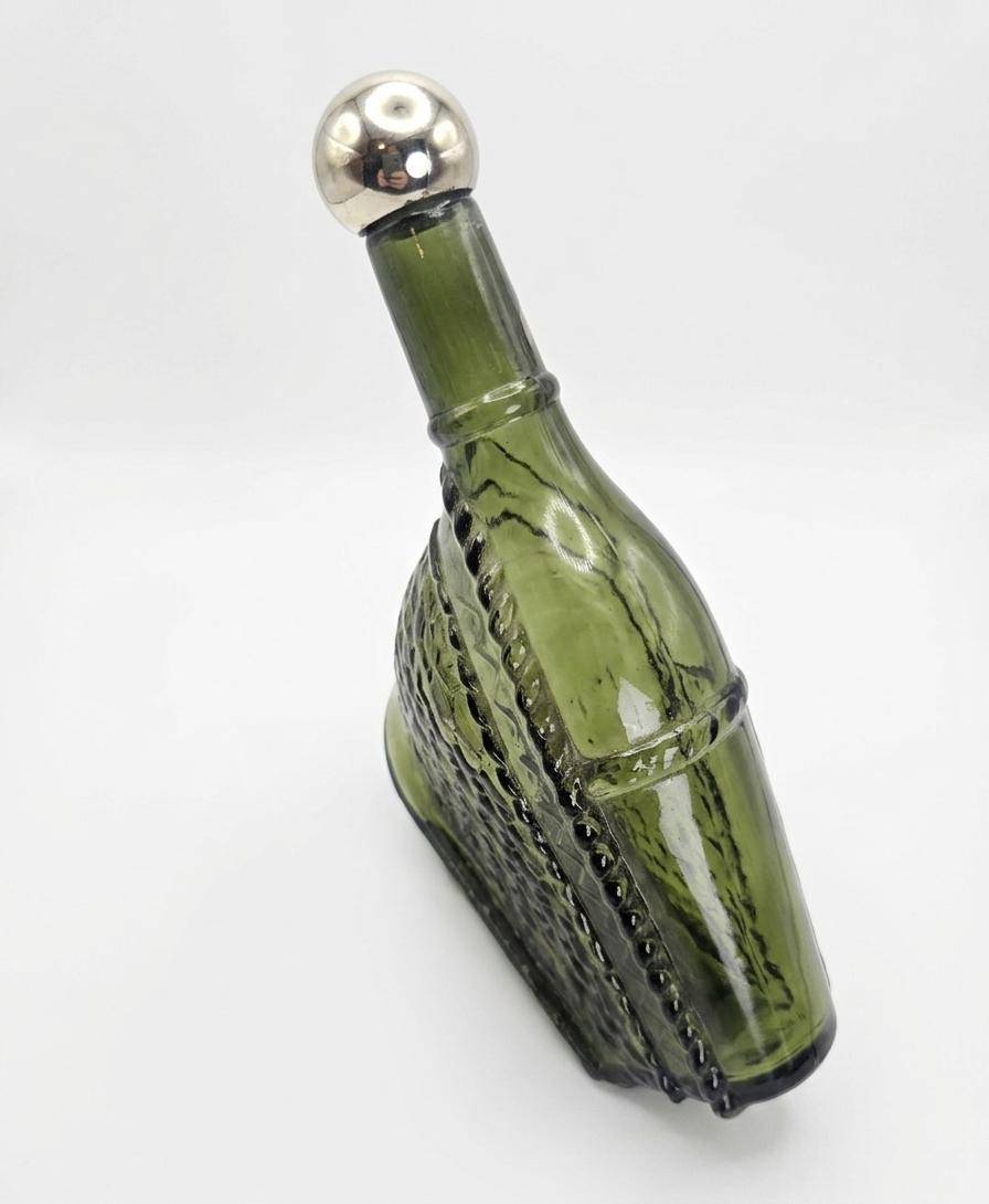This lot features a charming mix of household items including 8 sleek metal bowls, a unique green glass bottle with a stopper, a crystal decanter adorned with an ornate cross-shaped stopper, and a black "Pot Belly Stove" salt/pepper shaker marked as 5 1/2 ounces. Also included are two nostalgic framed art prints in wooden frames depicting heartwarming scenes. A versatile collection perfect for decor enthusiasts or collectors.