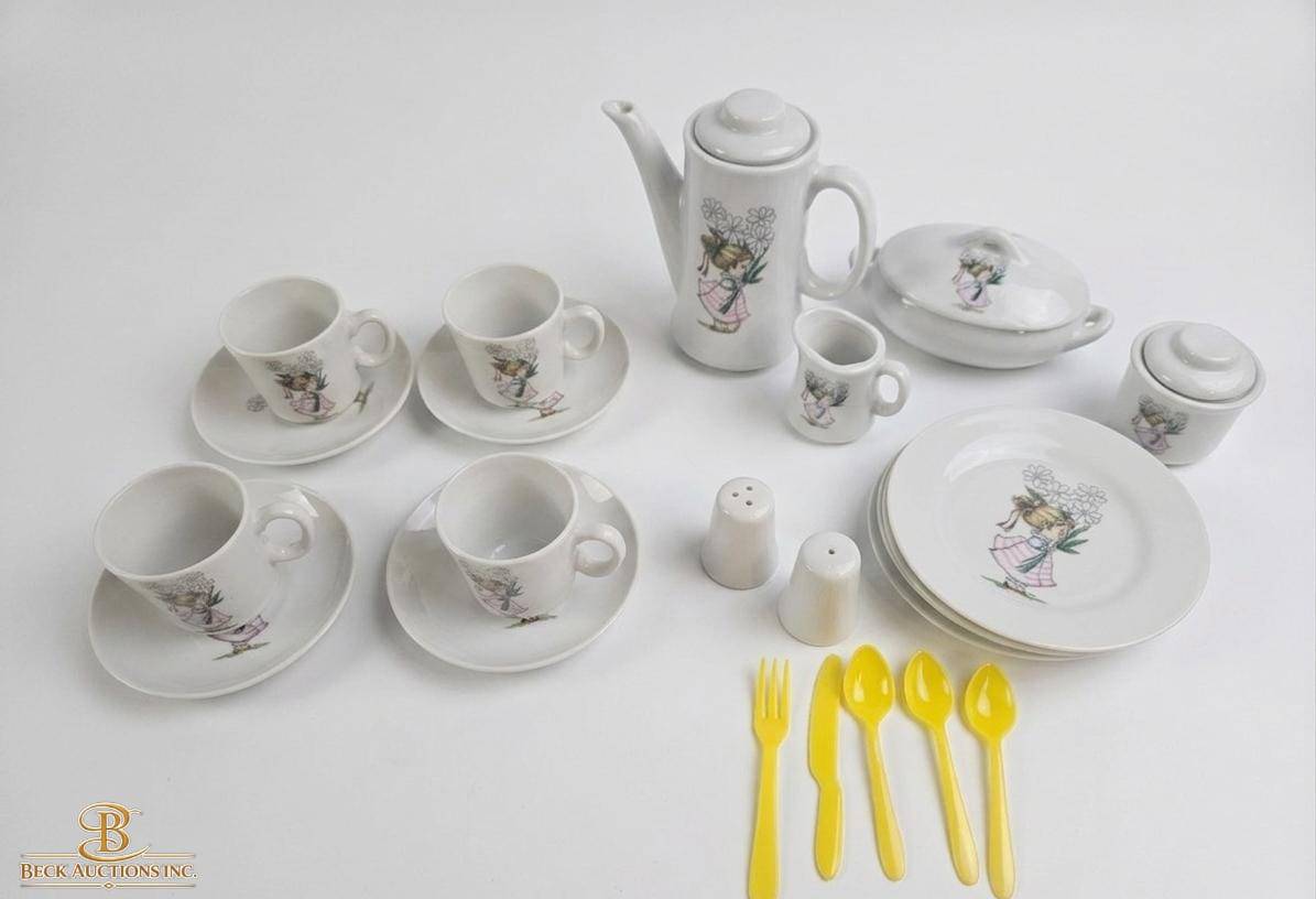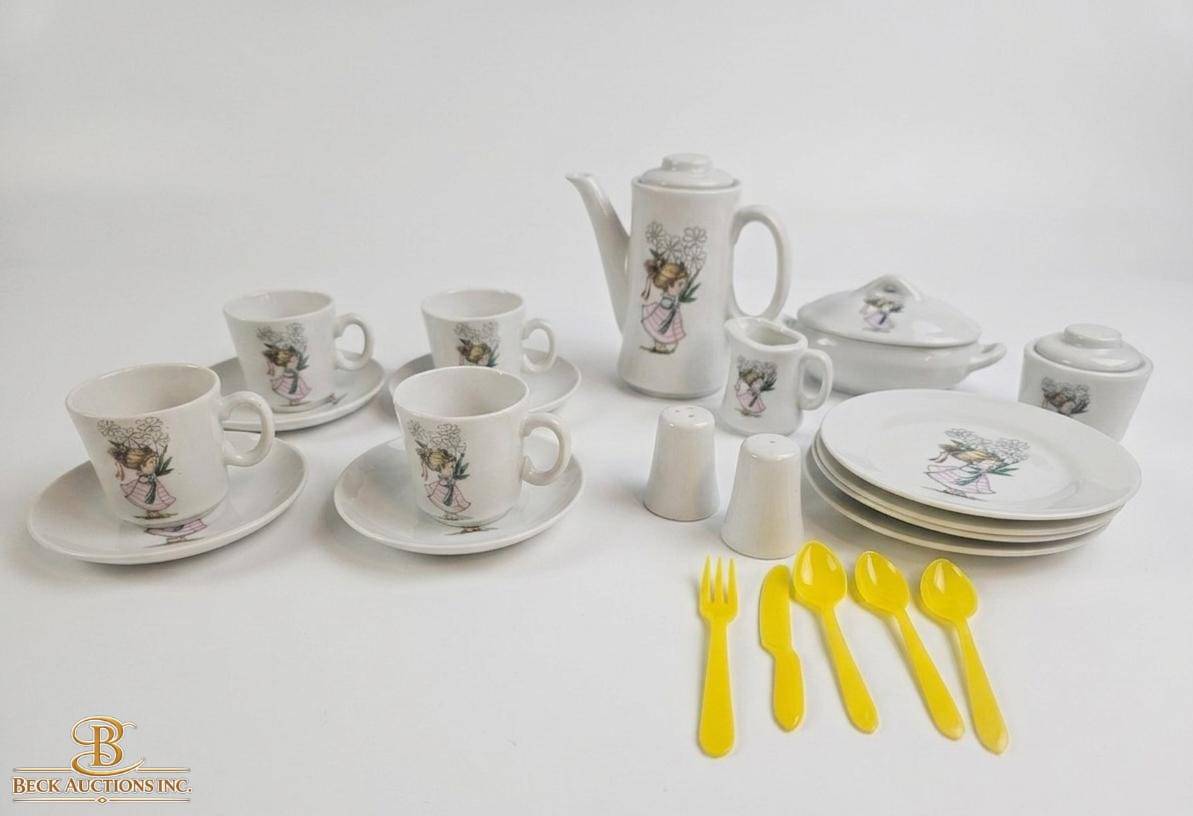 Lot 13 Japanese-Made 21-Piece Ceramic Tea Set with Floral Girl Design
