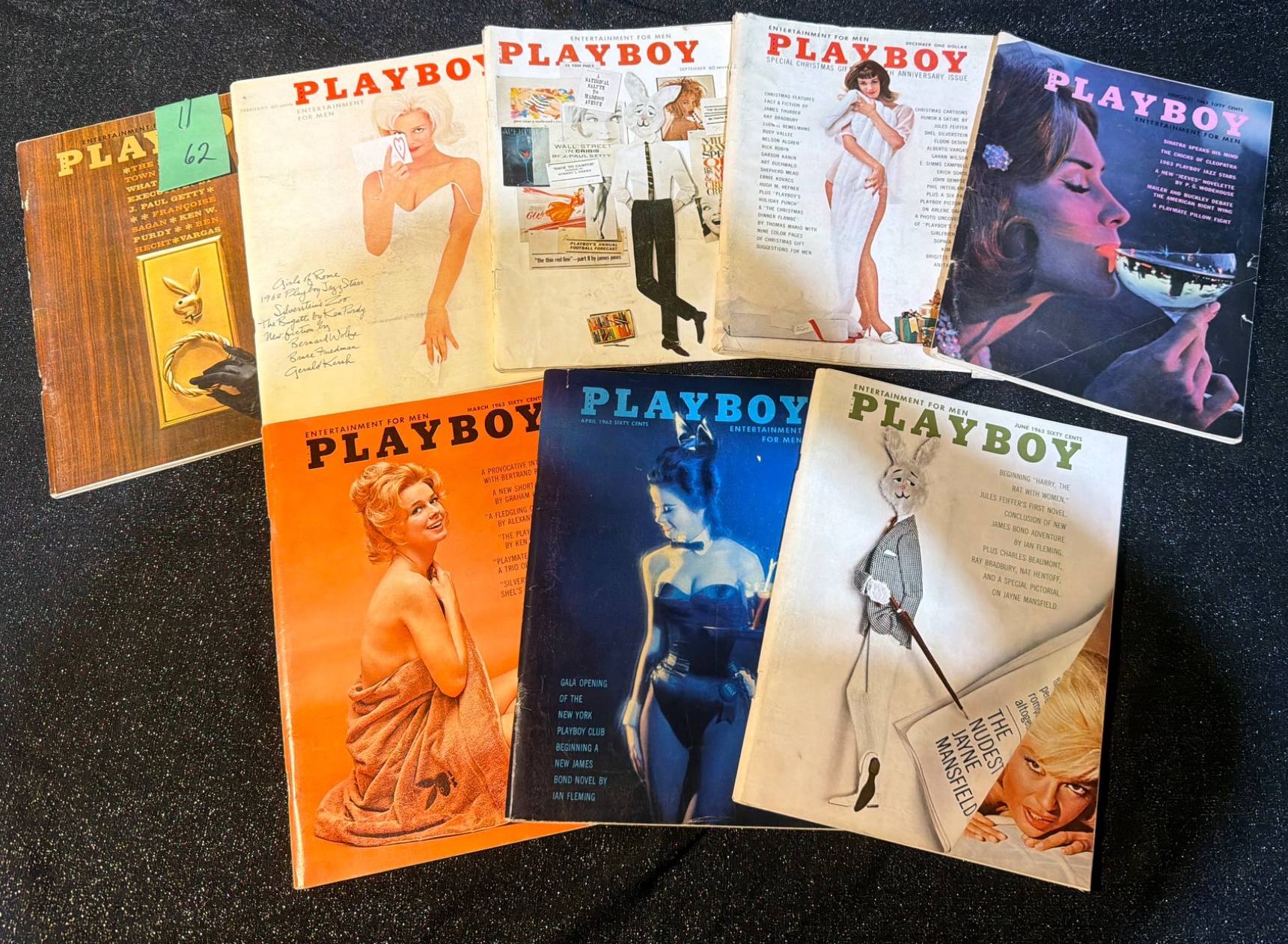 A curated selection of Playboy magazines spanning from 1962 to 1966. This lot includes a variety of issues featuring iconic vintage covers, period advertisements, and articles reflecting the culture of the era. The condition varies, with some showing minor wear typical of age. Dimensions of each magazine are approximately 8.5 x 11 inches. Ideal for collectors or enthusiasts of mid-20th-century pop culture.