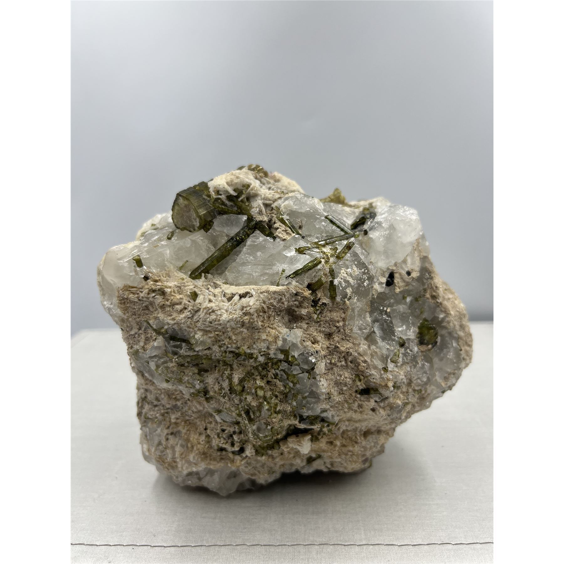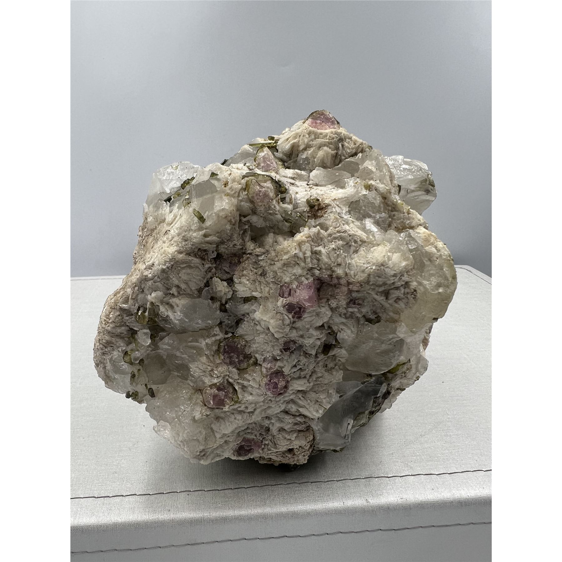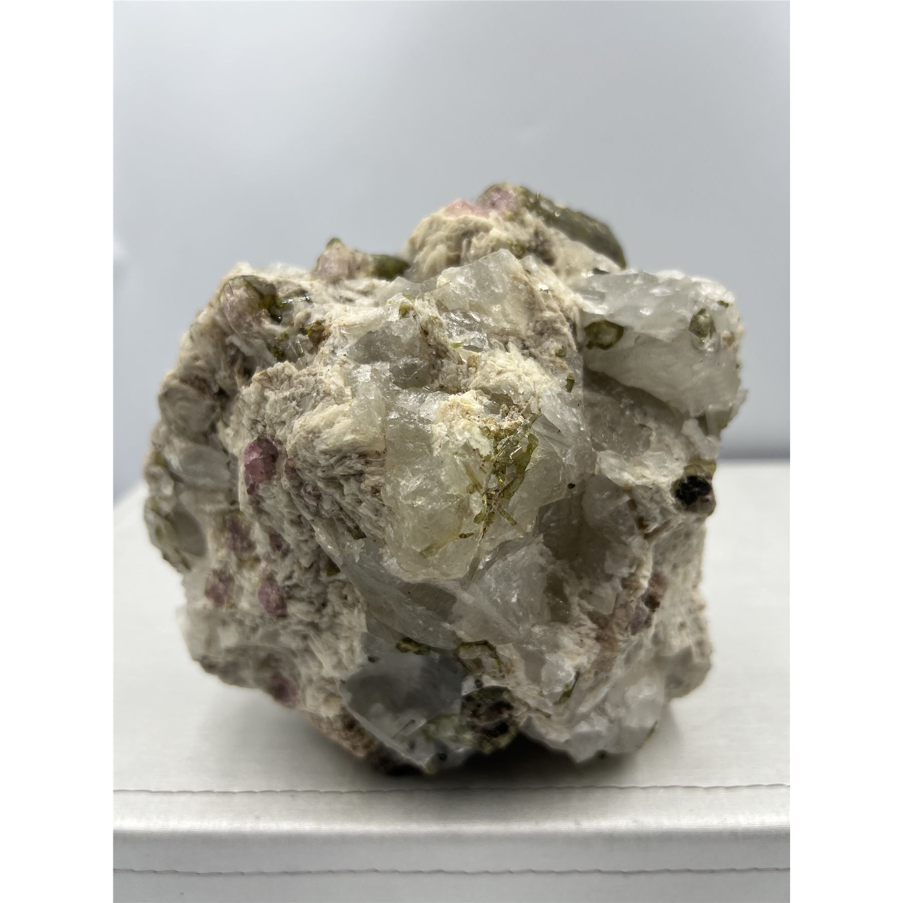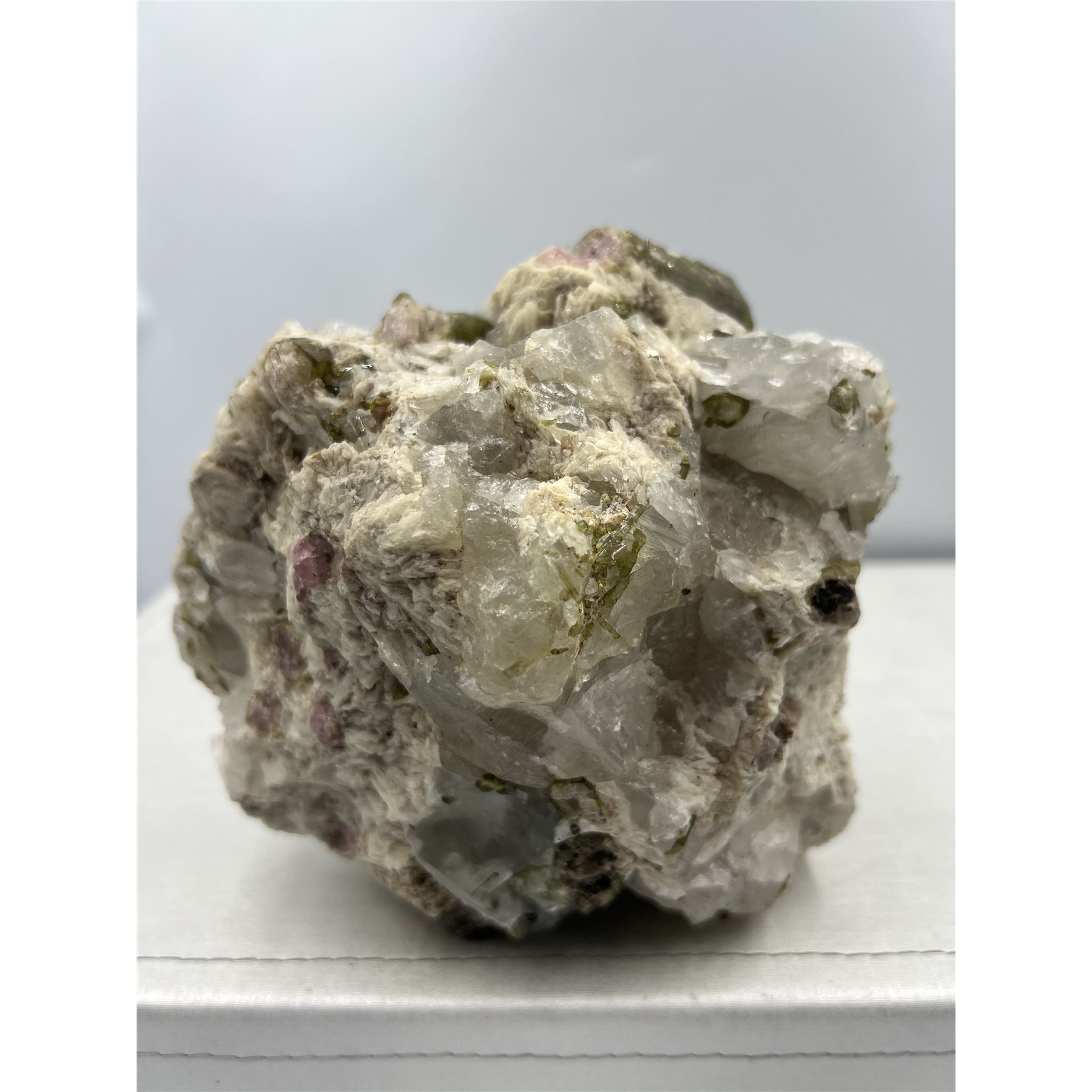 Lot 17 7 X 7 INCH GREEN AND PINK TOURMALINE IN CLEAR QUARTZ MATRIX
