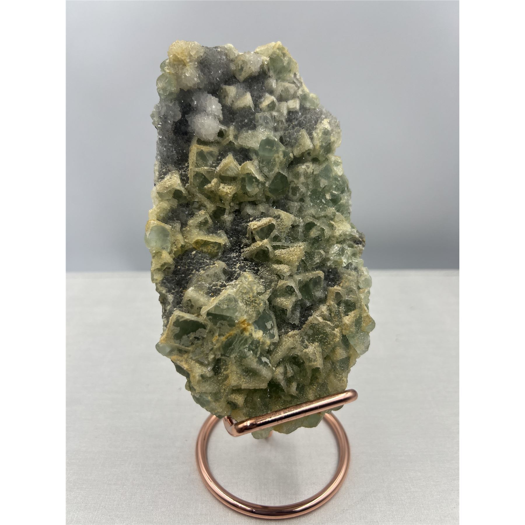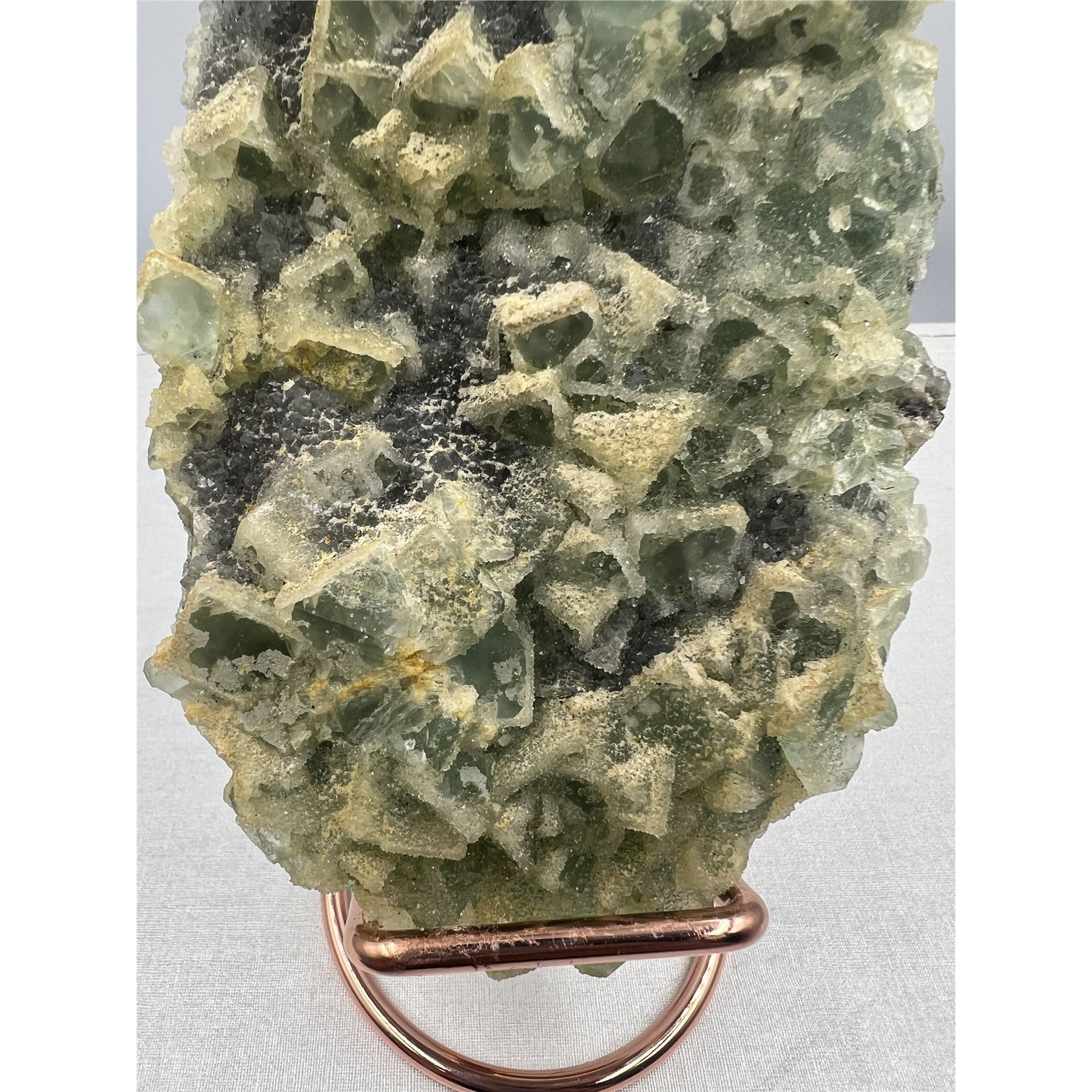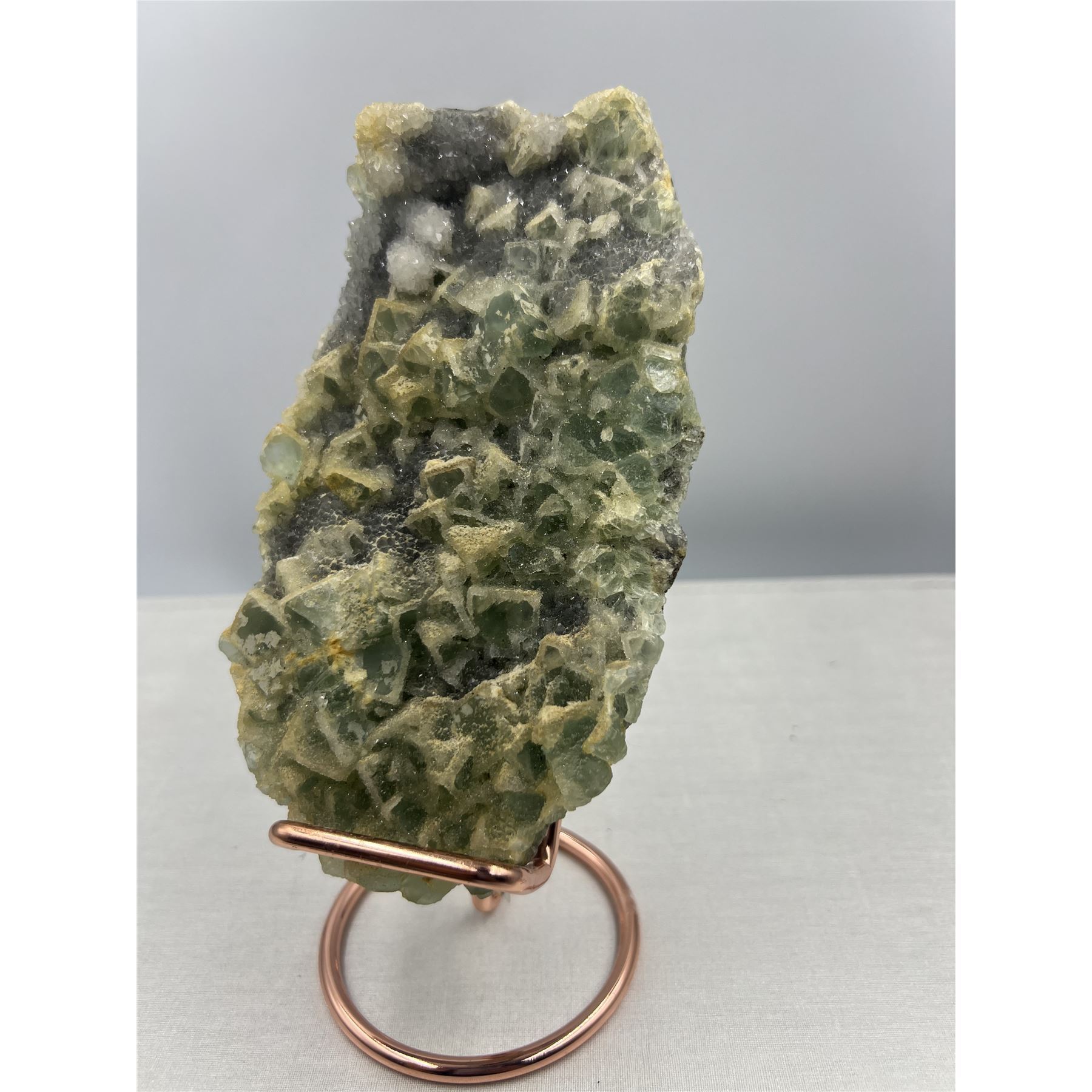 8 X 4 INCH GREEN SUGAR FLUORITE WITH CALCITE ON STAND