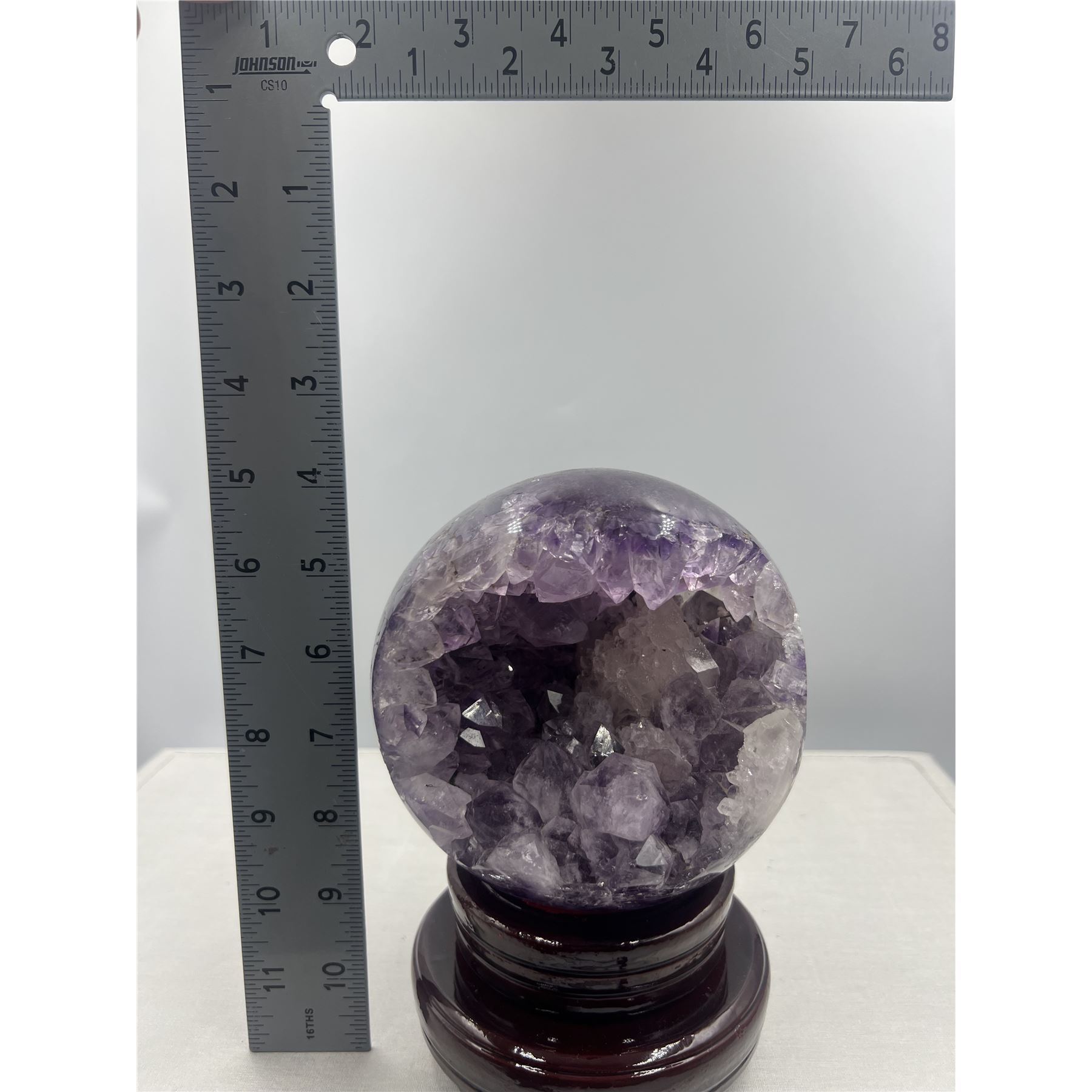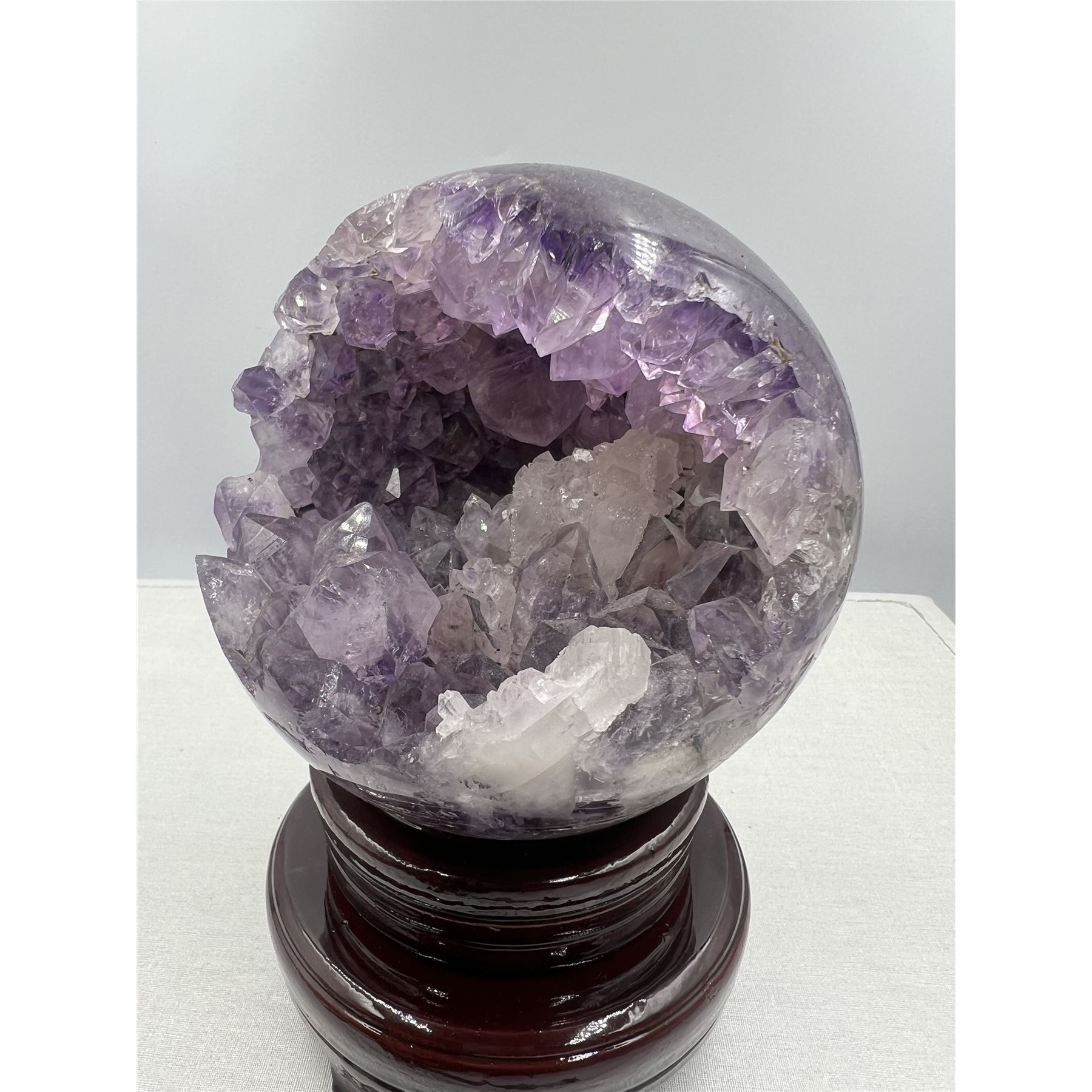 16 INCH CIRCUMFERENCE AMETHYST SPHERE WITH CALCITE FROM BRAZIL