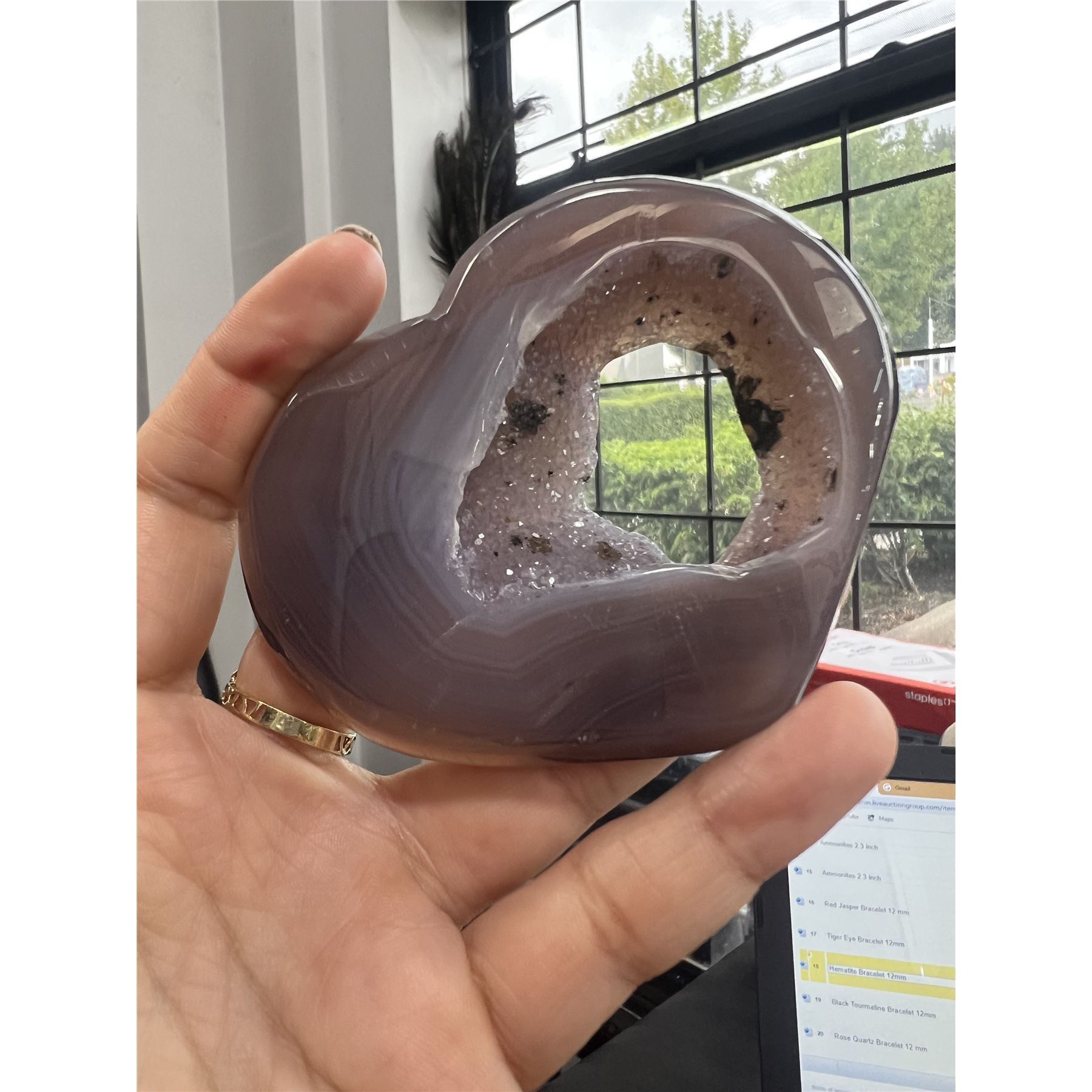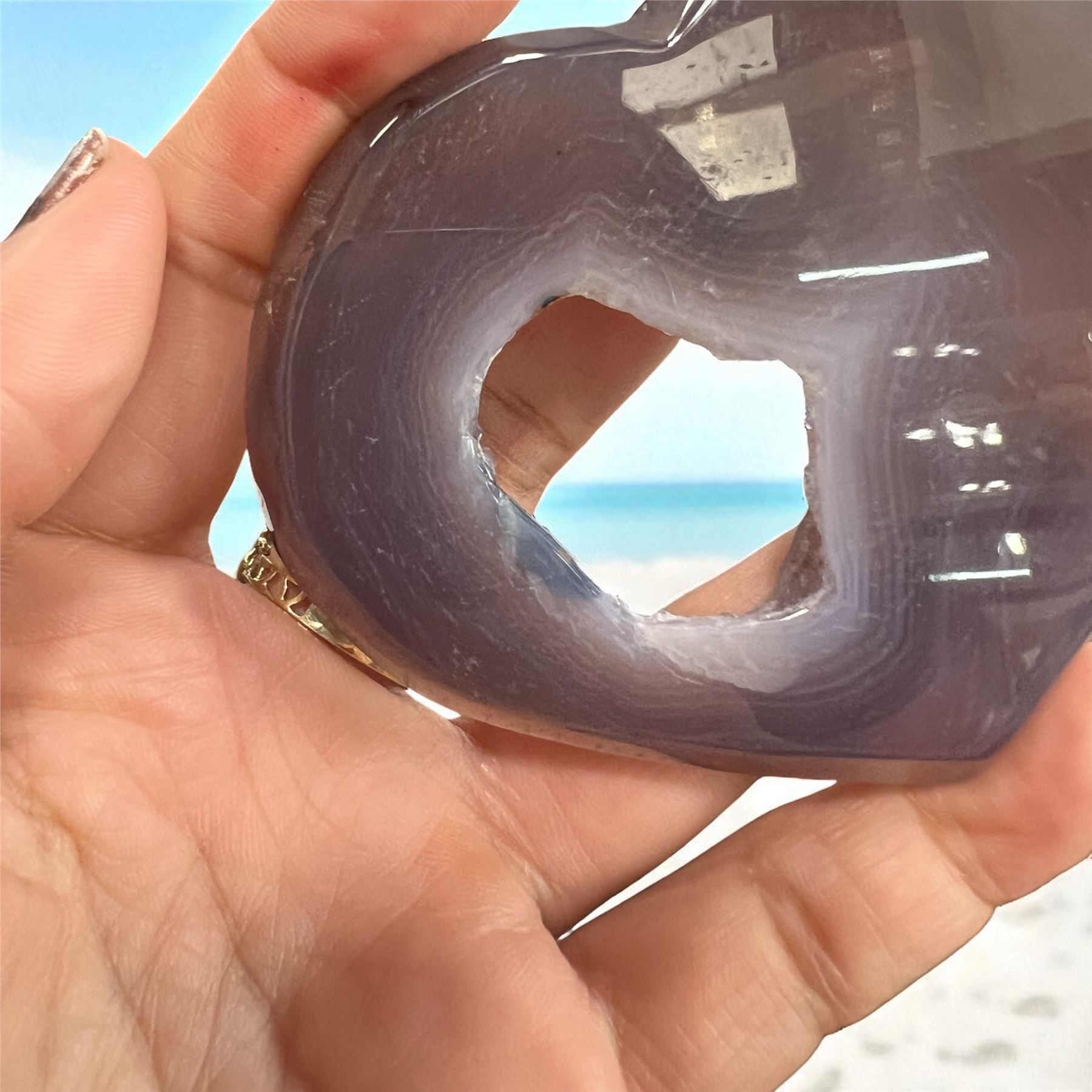 Lot 130 Agate Heart Shaped Stone with natural hole 3.2 inch