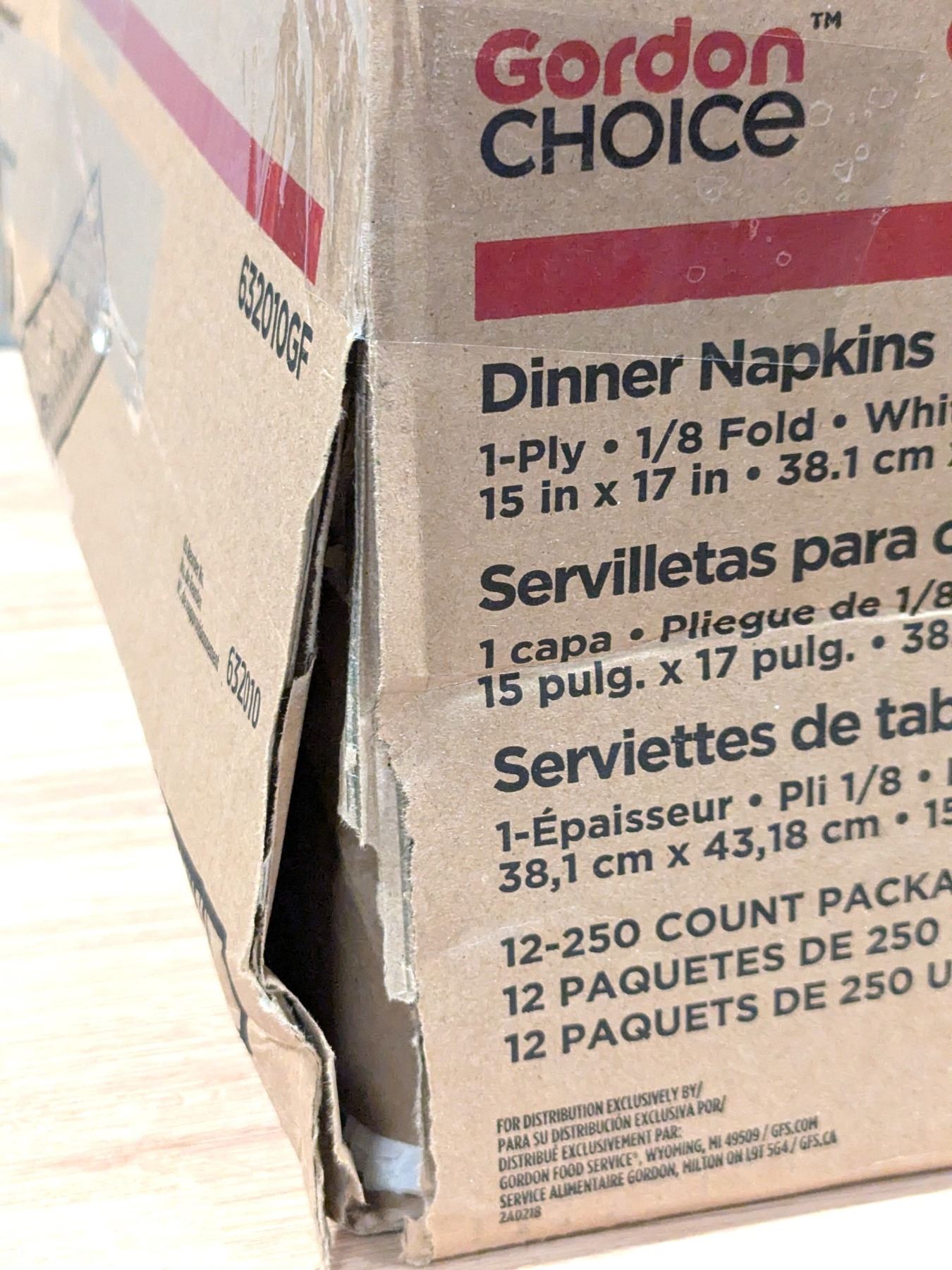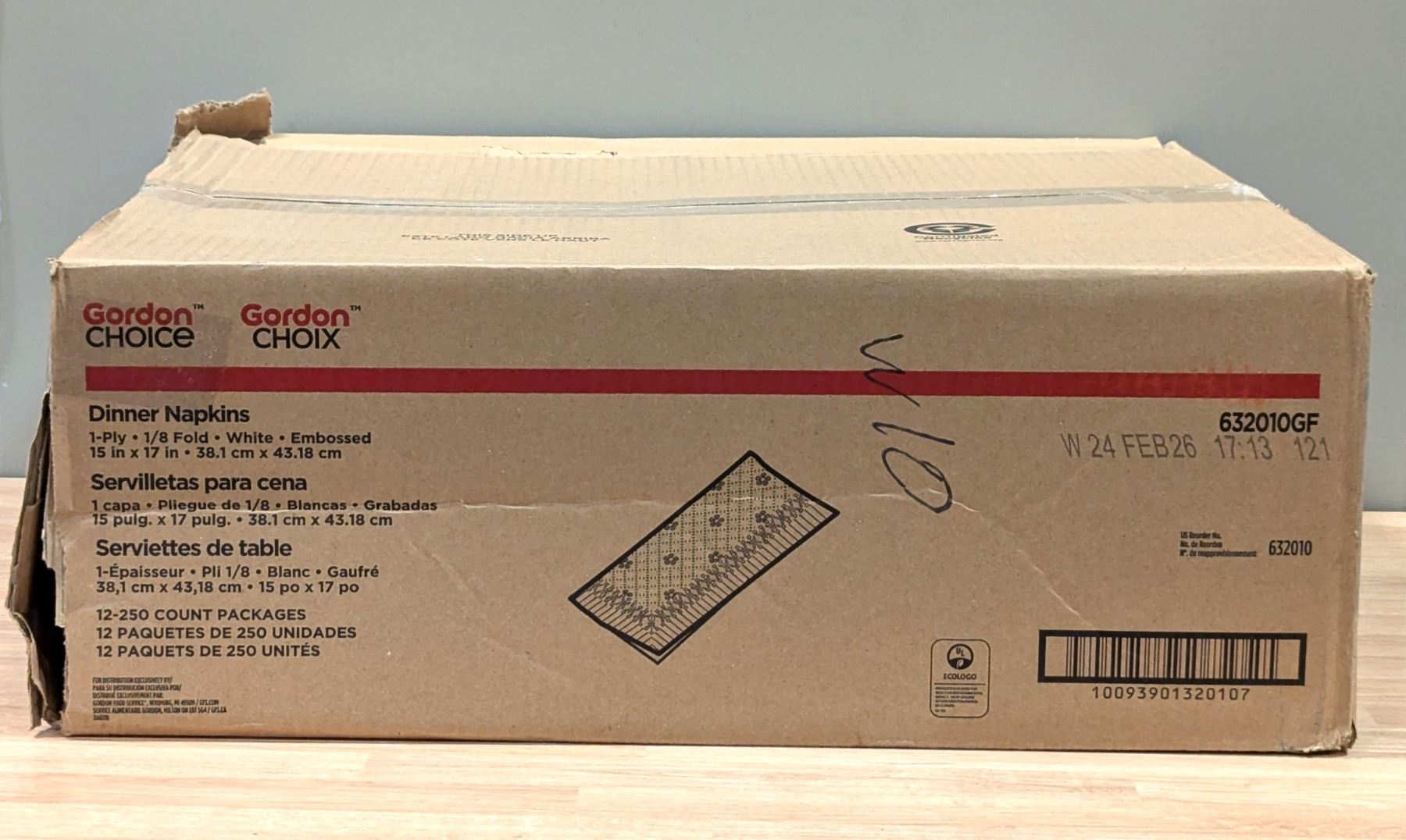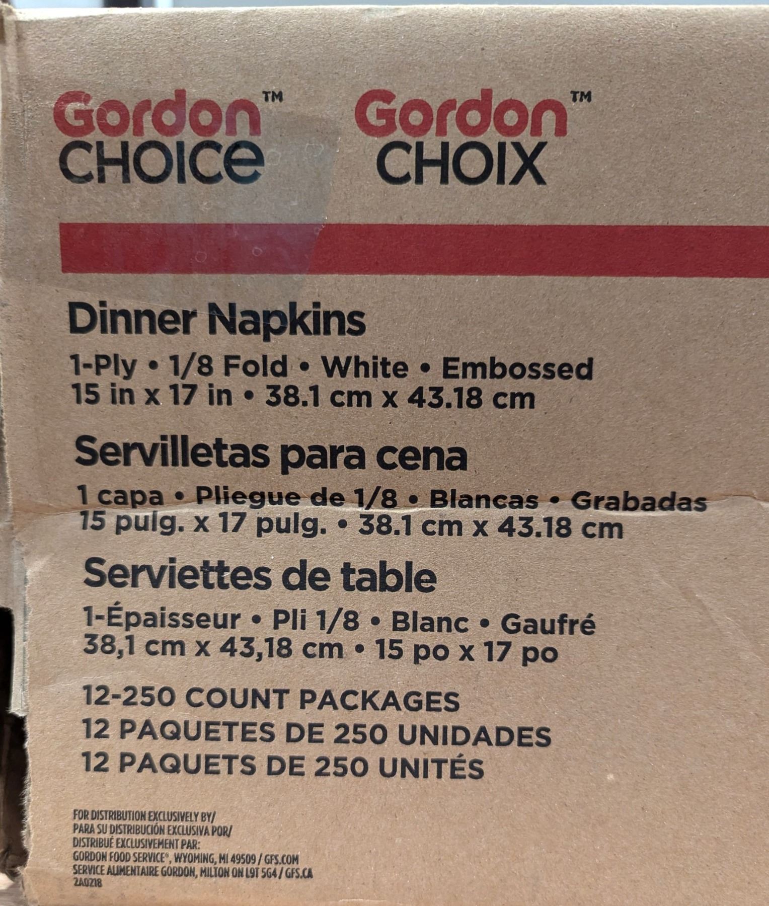 Lot 1015 Cordon Choice 632010GF Dispenser Napkins White, 250cnt - Lot of 12 (1 Case )