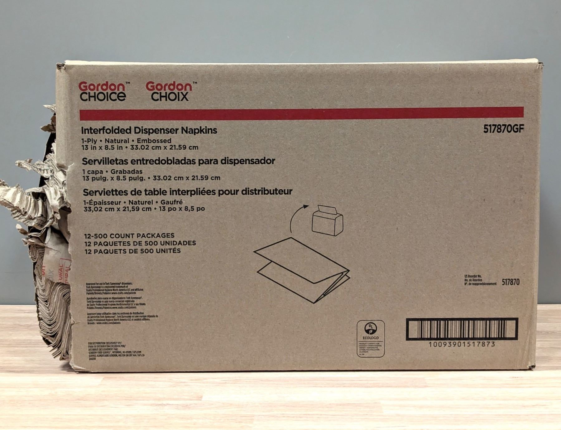 Lot 1016 Gordon Choice 517870GF Interfolded Dispenser Napkins, 500cnt - Lot of 12 (1 Case )
