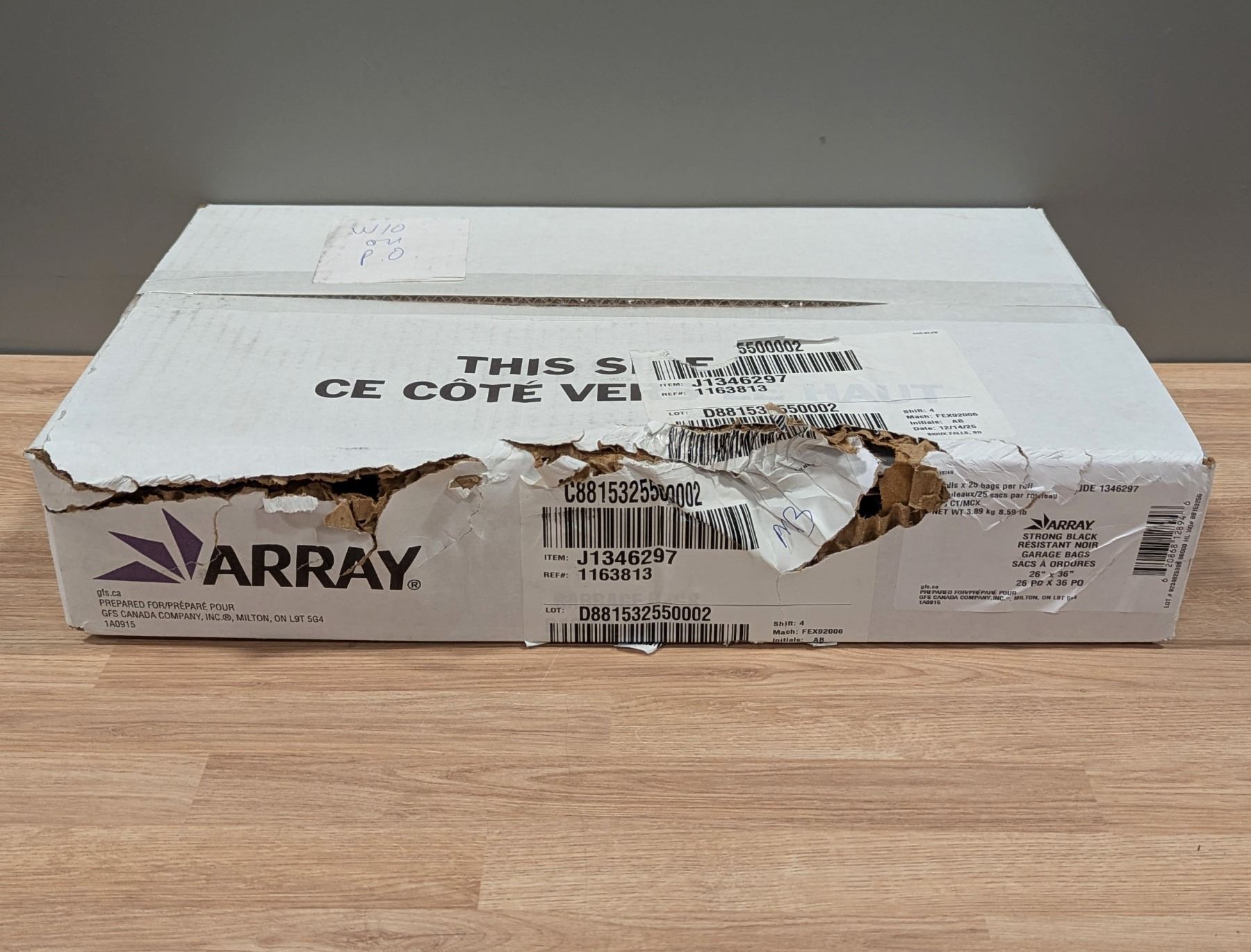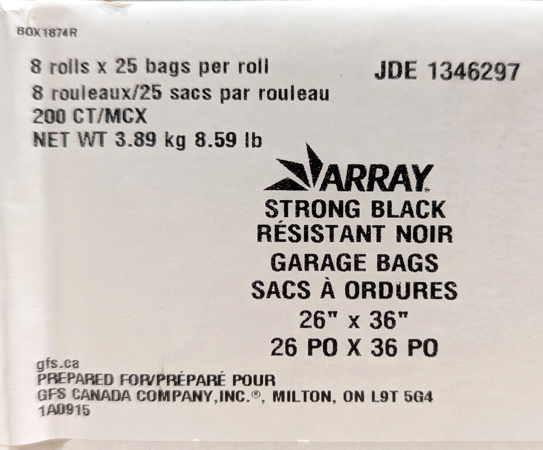 Lot 1022 Array Strong 26" x 36" Black Garbage Bags, 25 bags - Lot of 8 Rolls (1 Case)