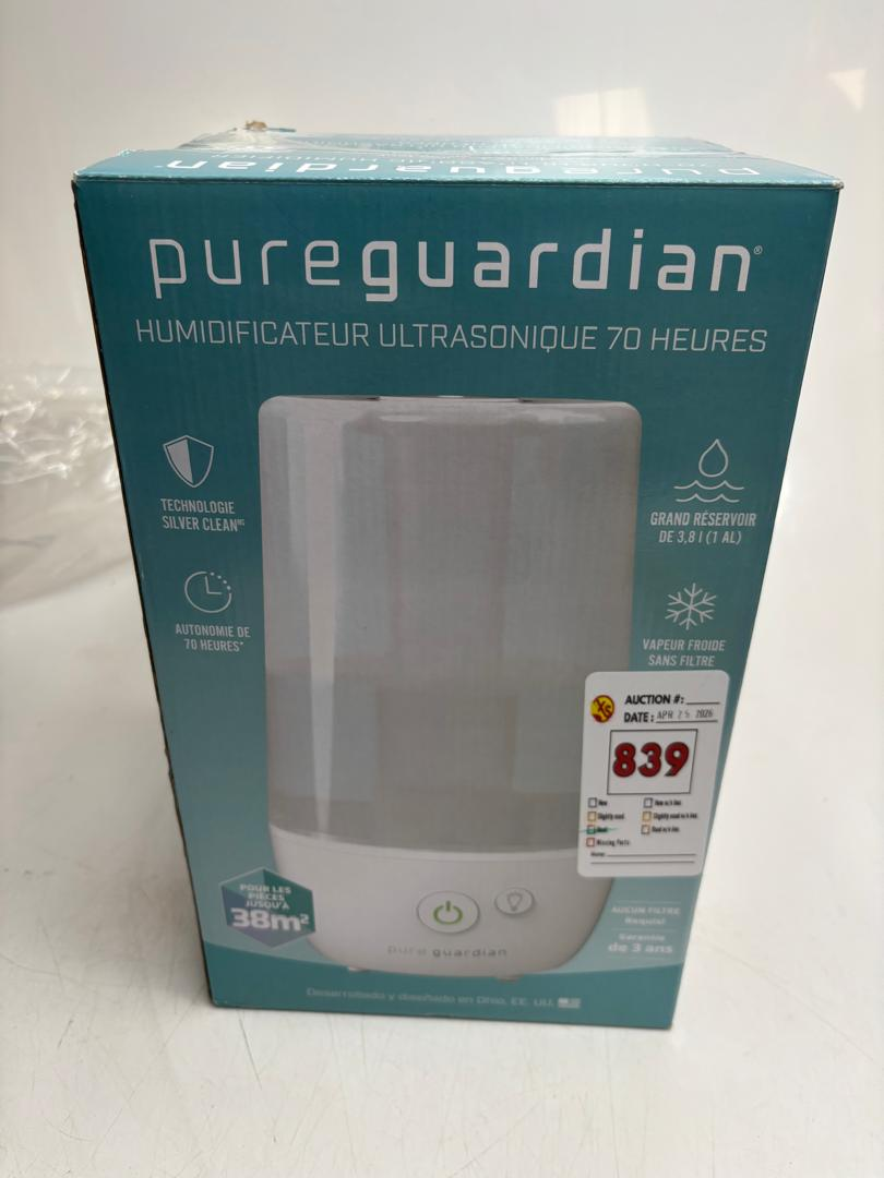 Lot 839 PUREGUARDIAN 1-GALLON ULTRASONIC COOL MIST HUMIDIFIER WITH AROMA TRAY -U