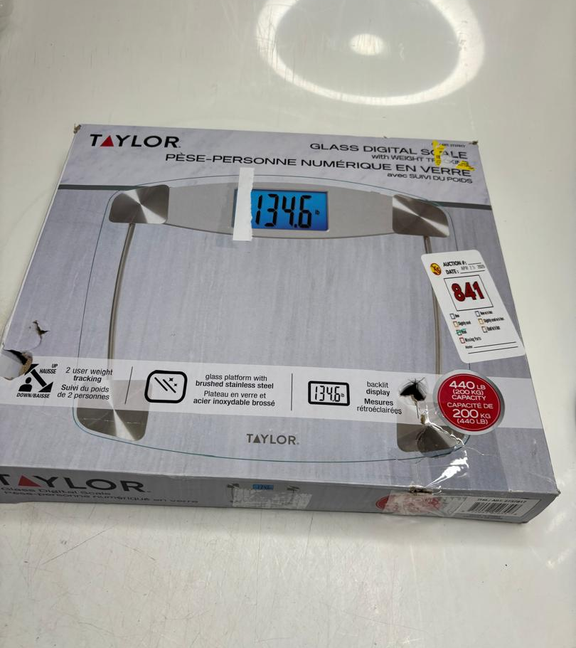Lot 841 TAYLOR GLASS DIGITAL SCALE WITH WEIGHT TRACKING -U