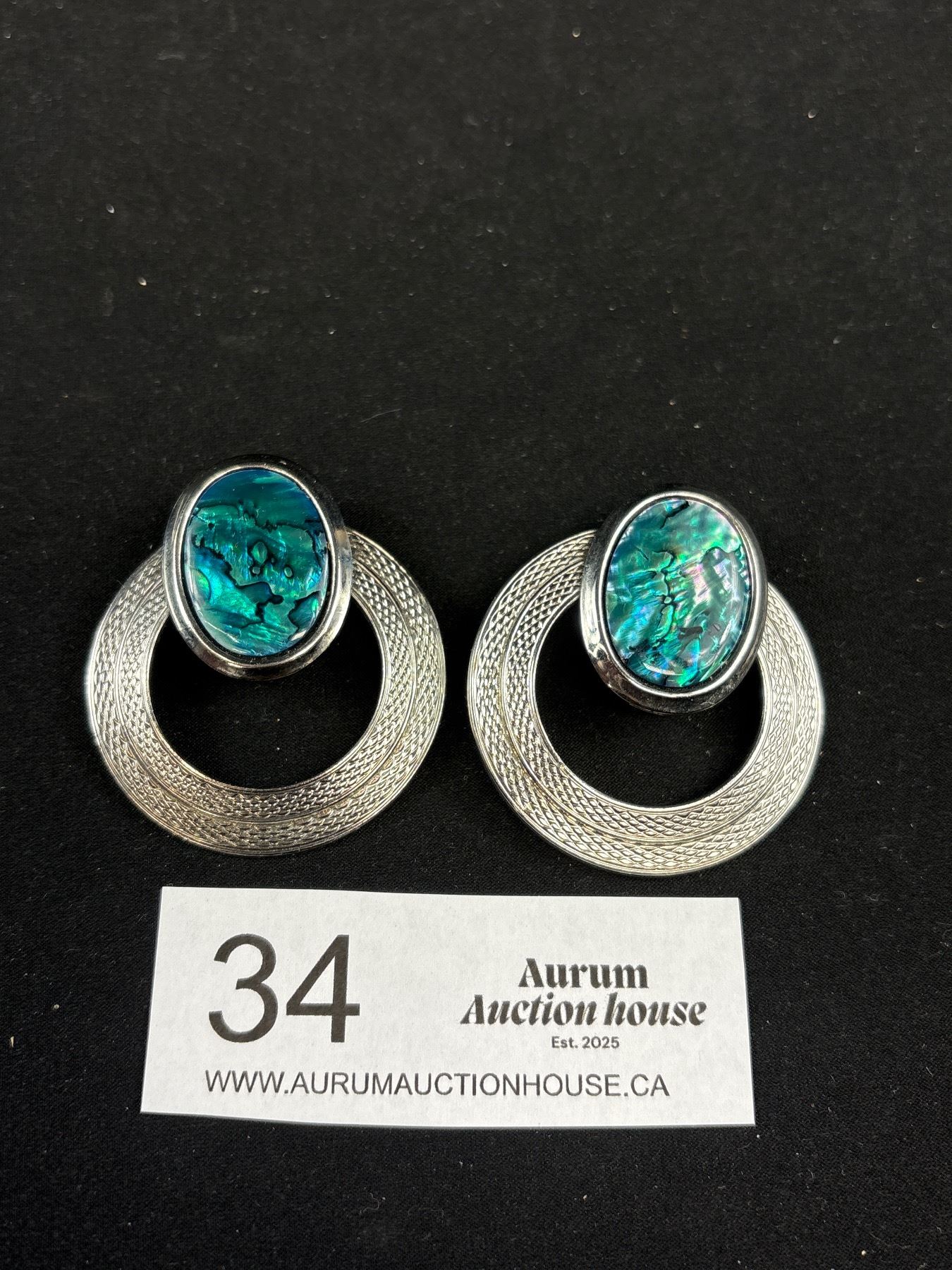 Lot 34 Pair of Silver w/ Abelone Clip On Earrings