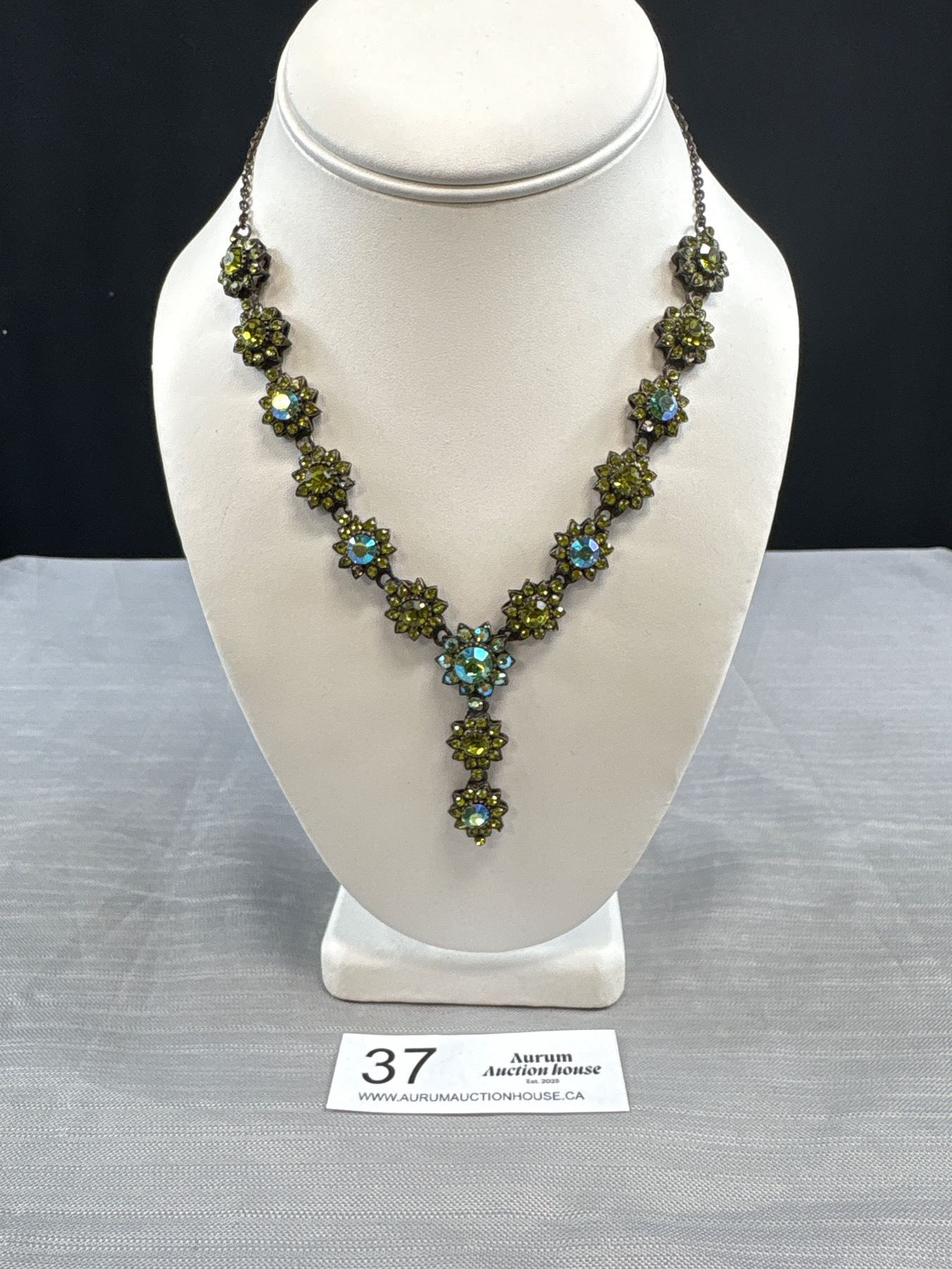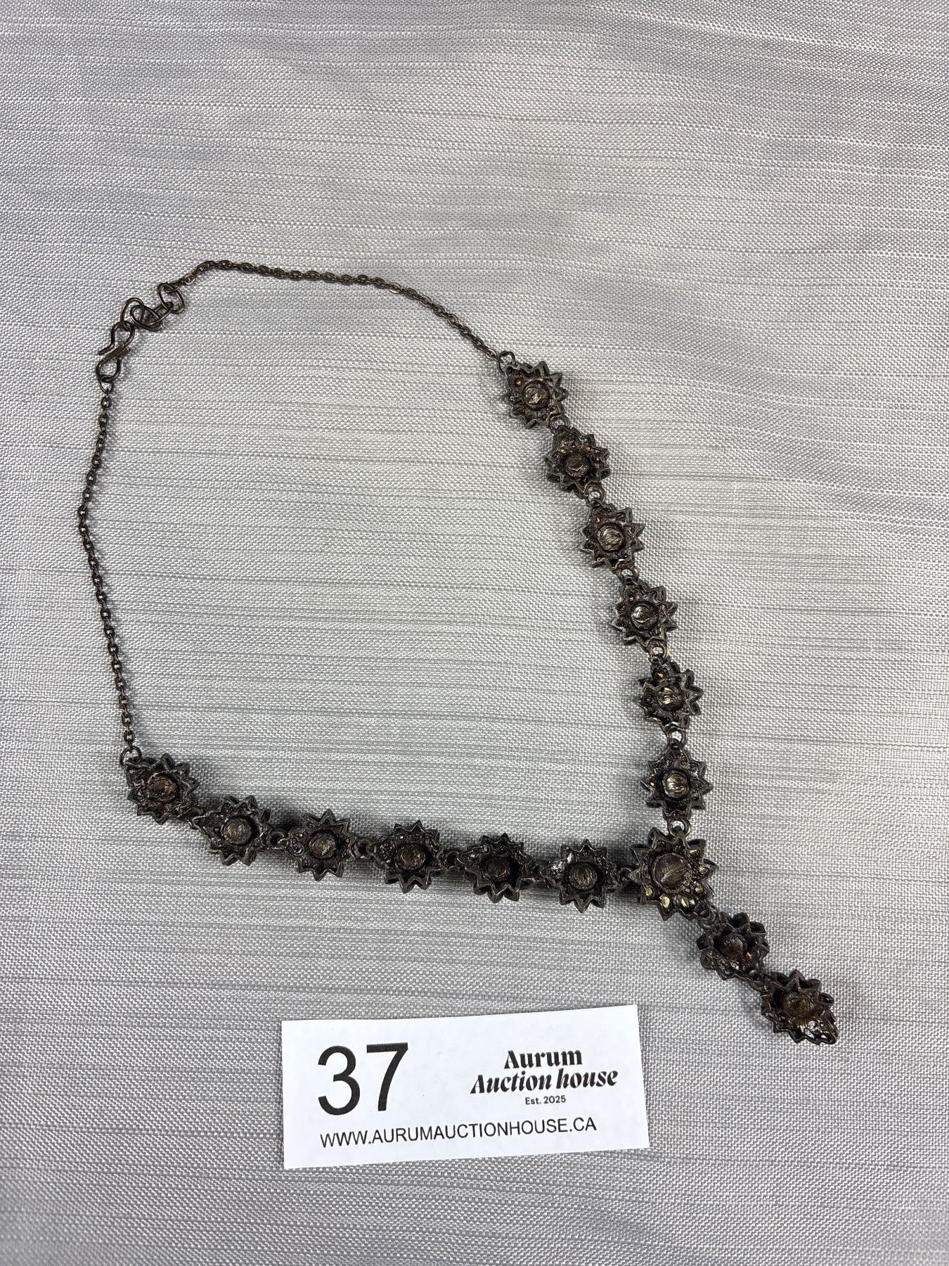 Lot 37 Vintage Black Metal w/ Rhinestones Choker Necklace