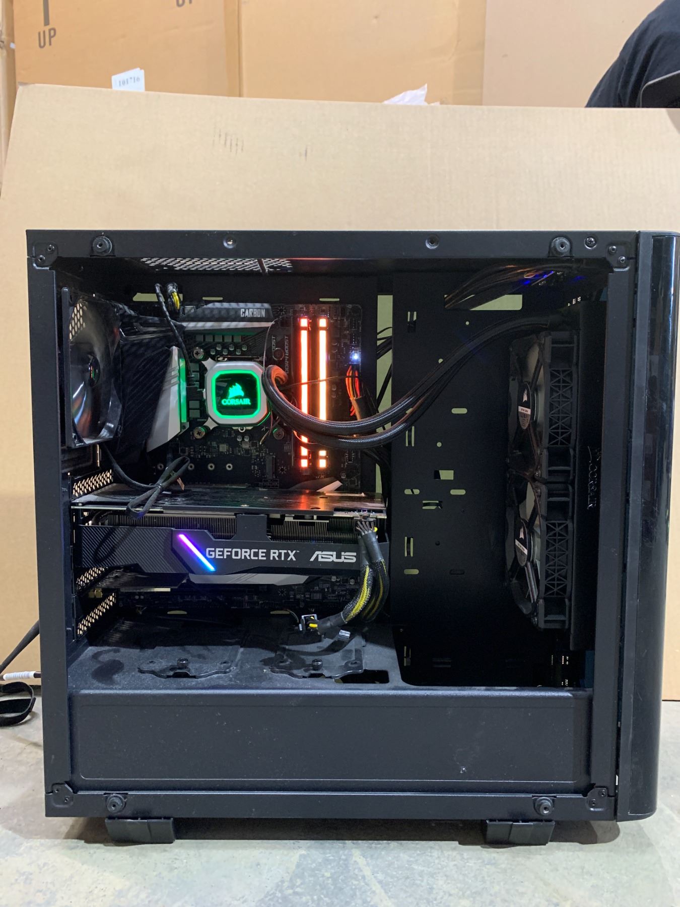 Used - Only Plugged in for power. Lights up. Has a GEFORCE RTX 2060, 32GB of LED Ram - SSD Card - Really nice case with tempered glass sides.