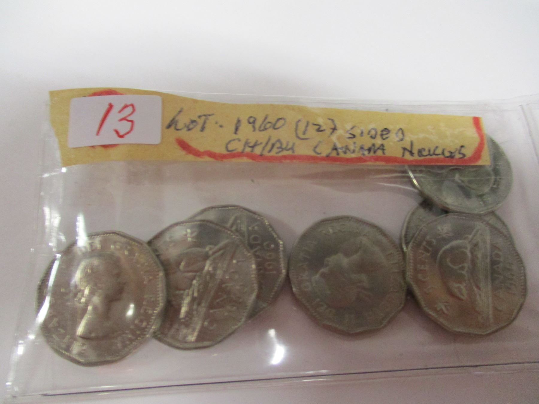 Lot 13 LOT OF 6 - 1960 CH/BU 12 SIDED CANADA NICKELS