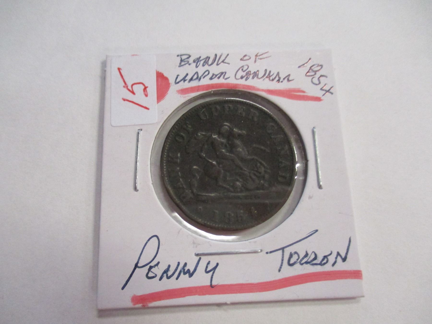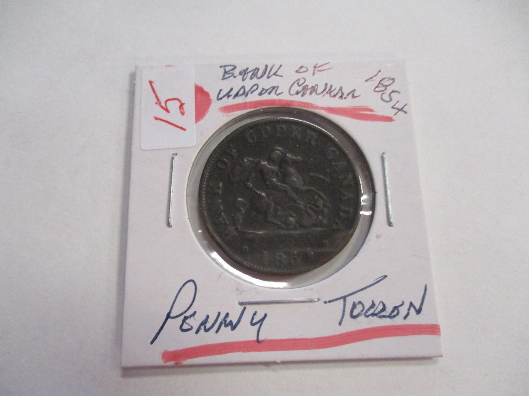 Lot 15 1854 BANK OF UPPER CANADA HALF PENNY TOKEN