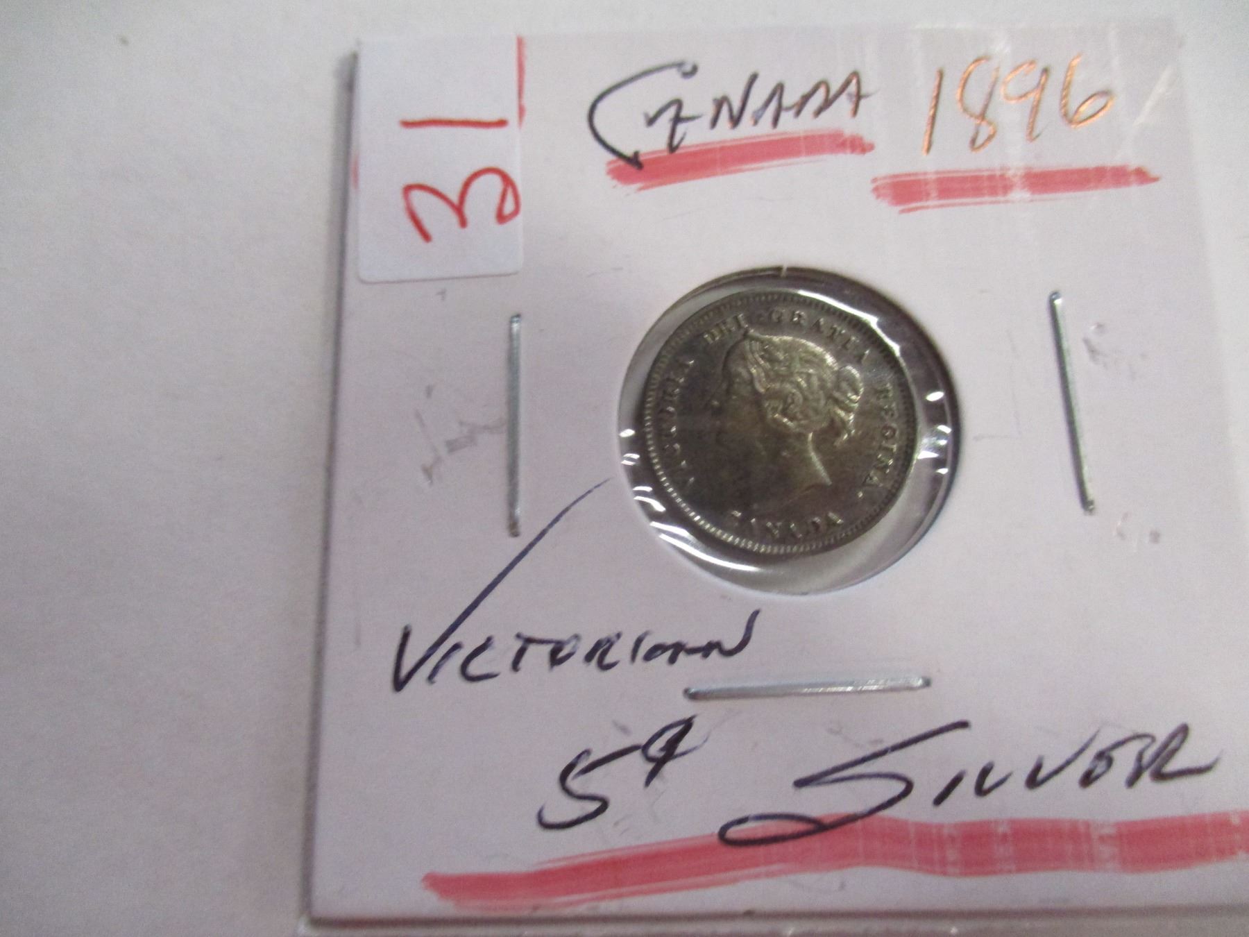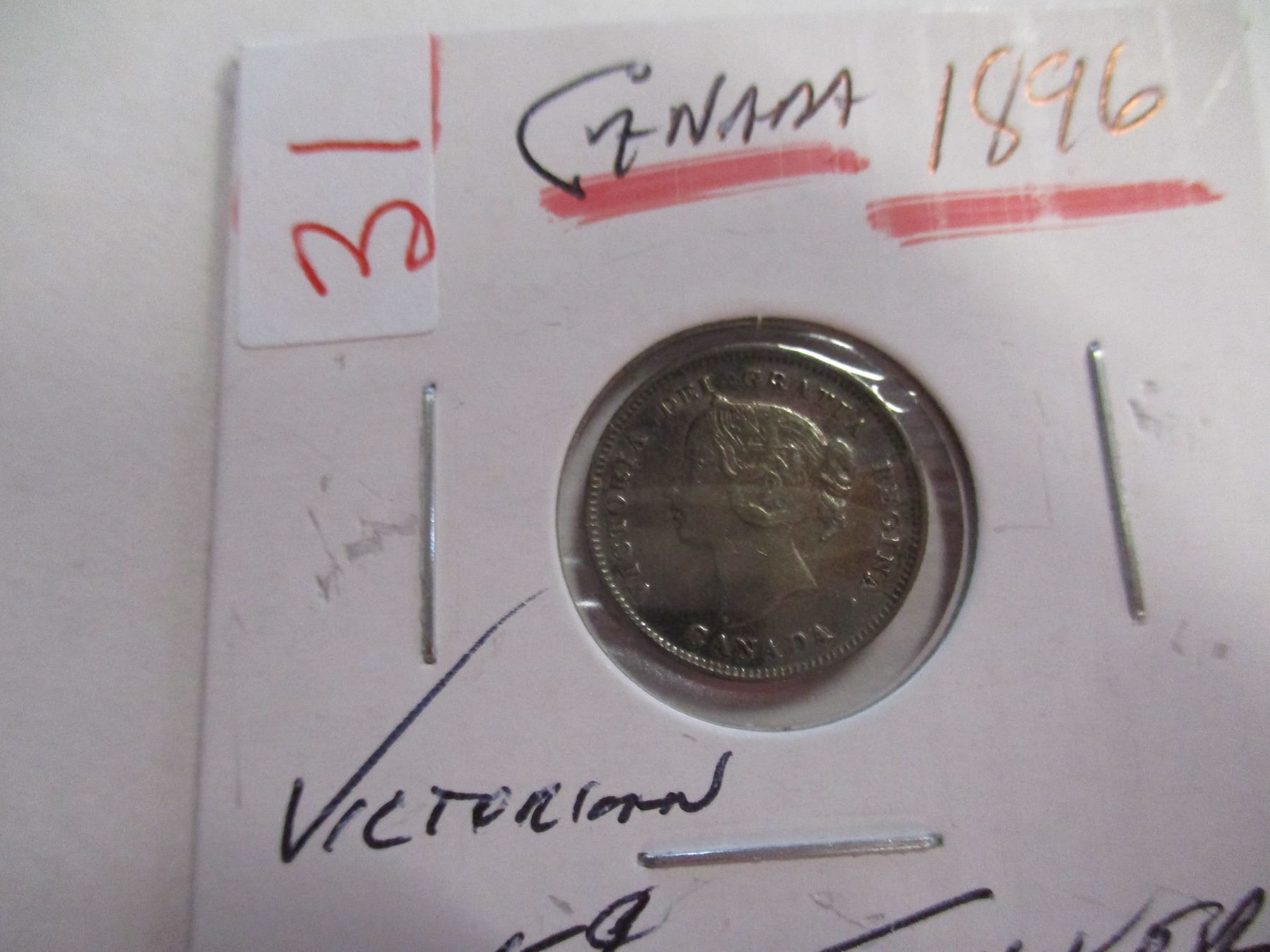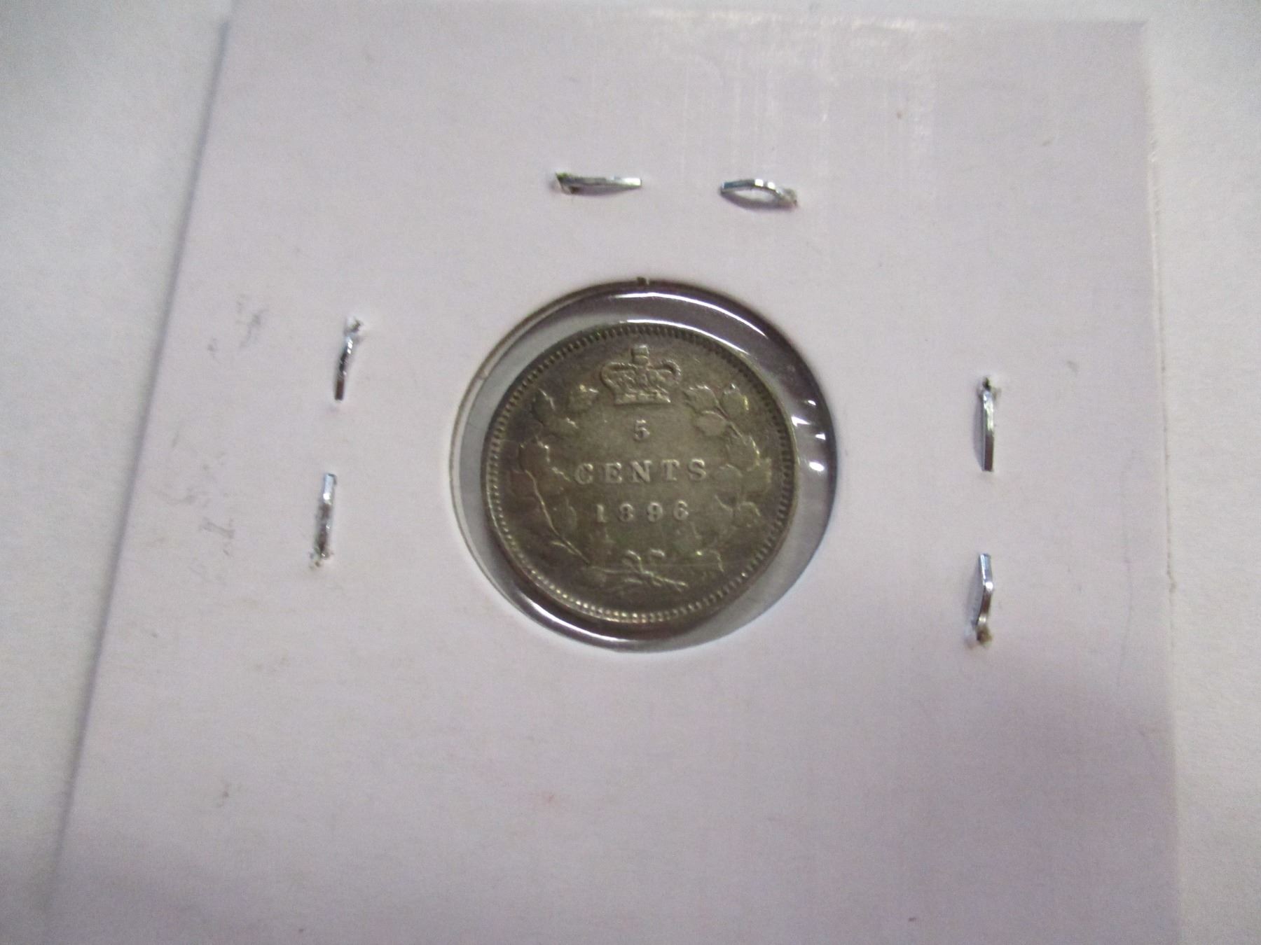 Lot 31 1896 EF CANADA VICTORIAN SILVER FIVE CENT