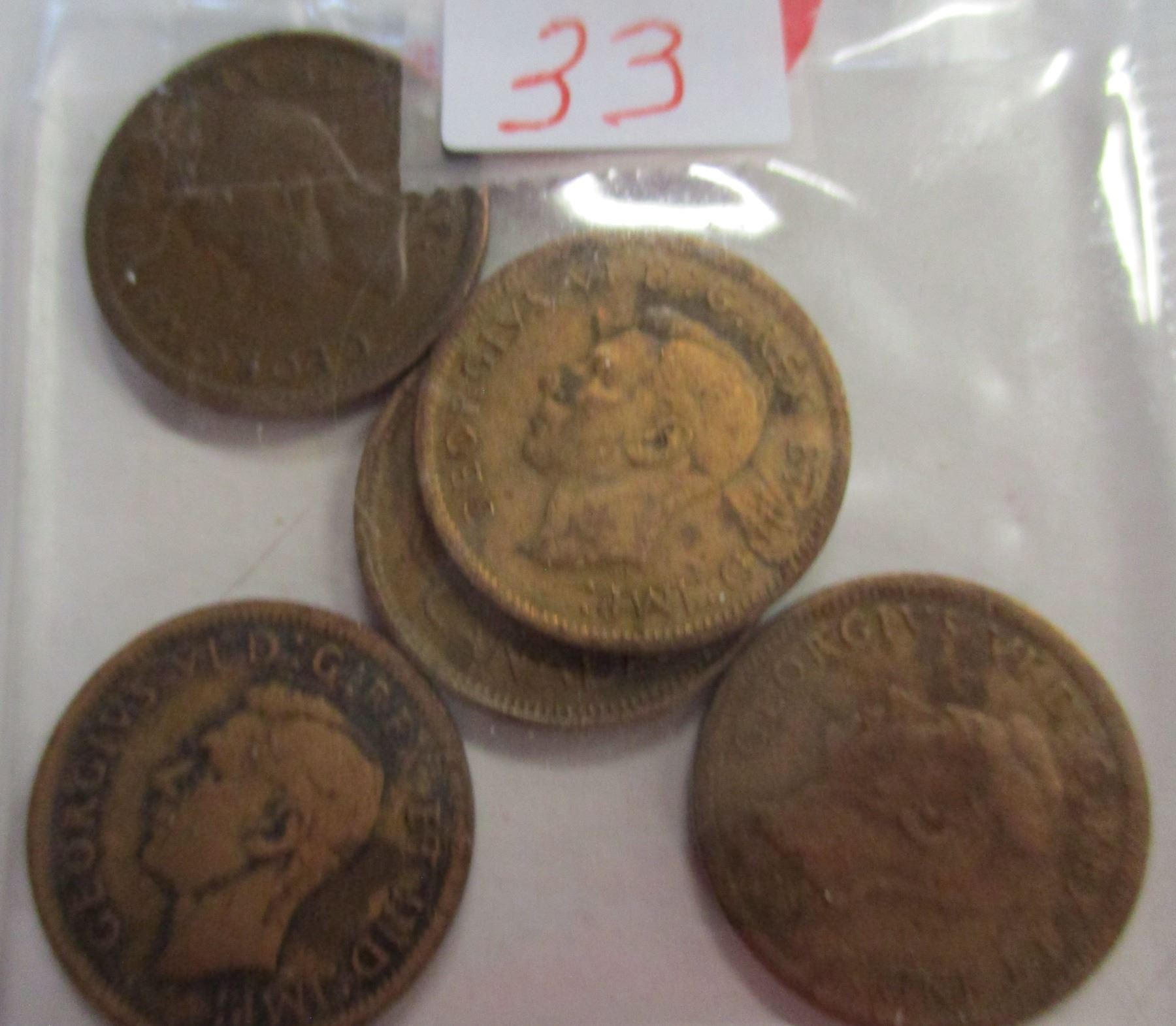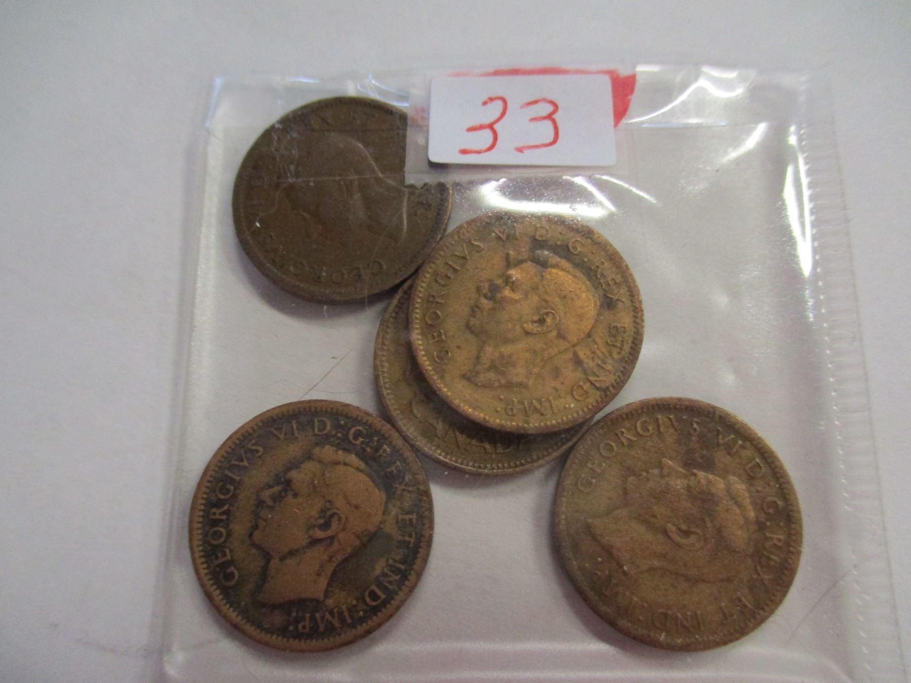 Lot 33 1938 LOT OF 5 LAST OF CANADA KING GEORGE VI PENNIES