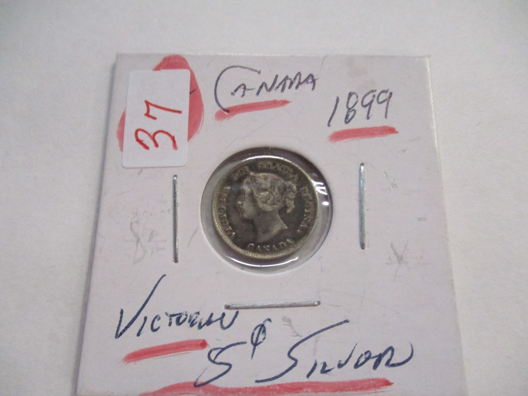 Lot 37 1899 CANADA VICTORIAN SILVER FIVE CENT