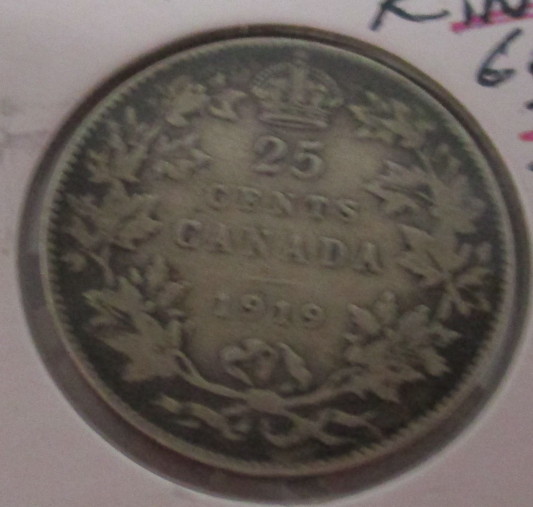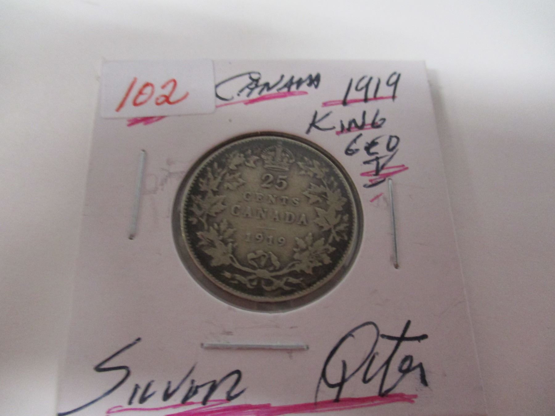 Lot 102 1919 CANADA KING GEORGE V SILVER QUARTER