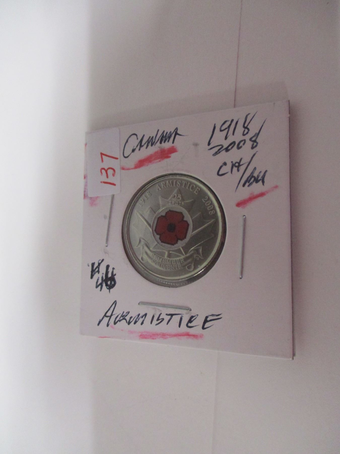Lot 137 1918 - 2008 CH UNCIRCULATED CANADA ARMISTICE QUARTER