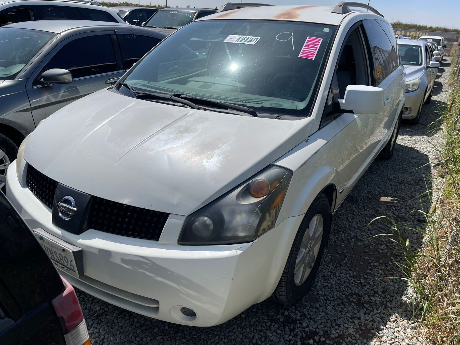 MAKE: NISSAN || MODEL: QUEST || YEAR: 2006 || TITLE: T-DONATION || VIN: 5N1BV28U06N101429 || MILES: TMU || ENGINE: 6 CYL / 3.5 L || COLOR: WHITE || KEYS: Yes