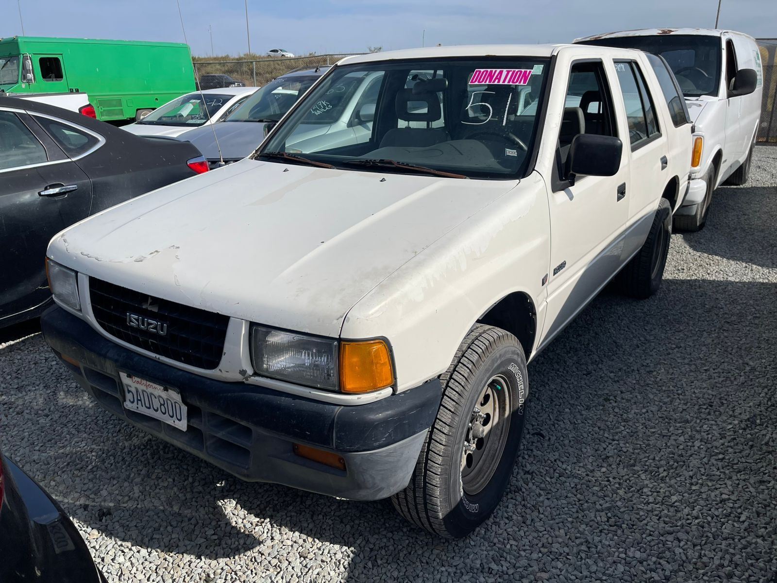MAKE: ISUZU || MODEL: RODEO || YEAR: 1995 || TITLE: T-DONATION || VIN: 4S2CK58V7S4382662 || MILES: 238938 || ENGINE: 6 CYL / 3.2 L || COLOR: WHITE || KEYS: Yes