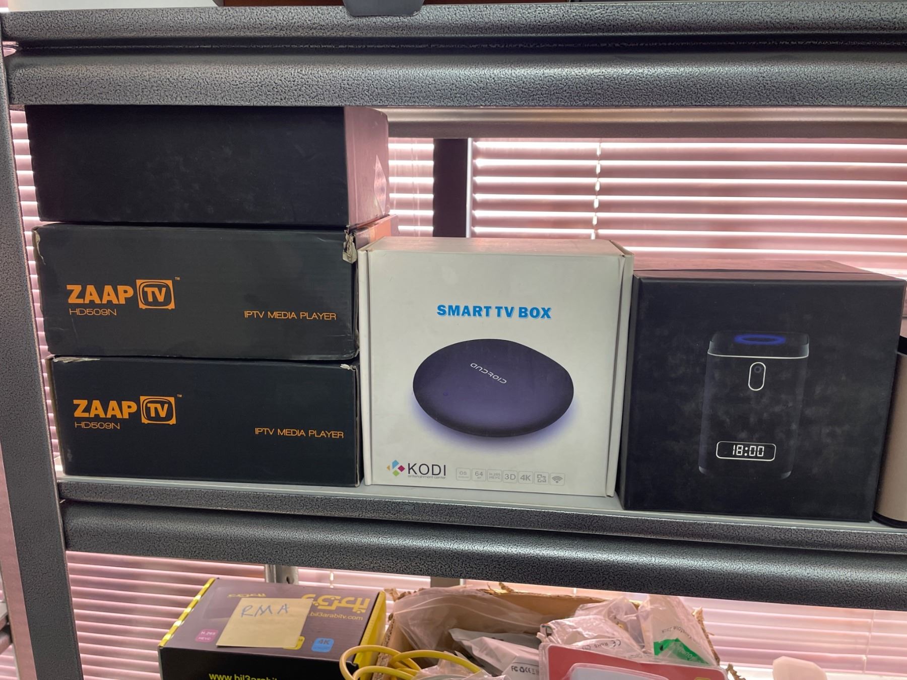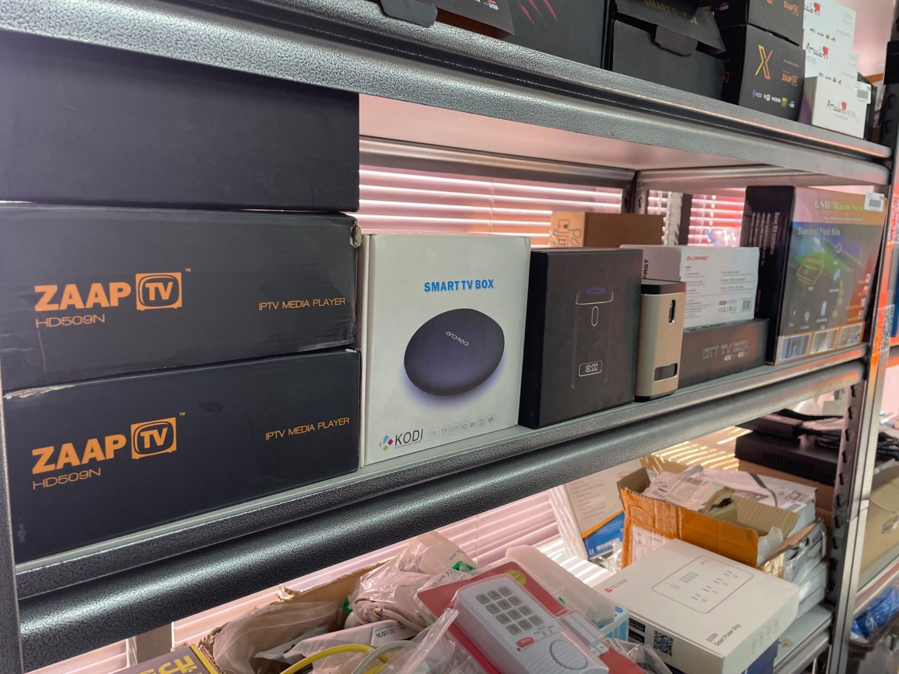 Lot of Assorted Home Electronics Including Zaap TV, GSM Alarm System, and Smart TV Box