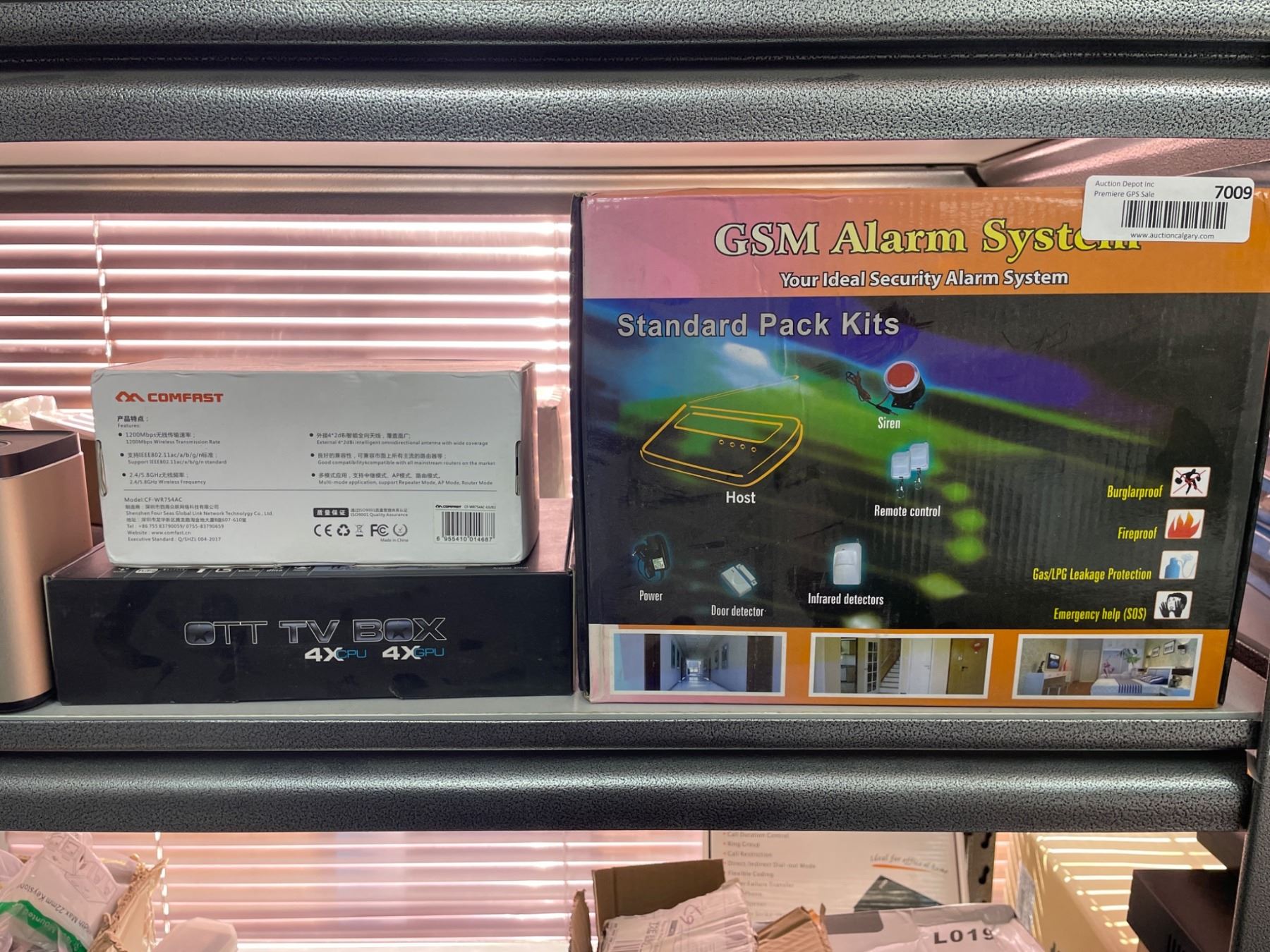 Lot 7009 Lot of Assorted Home Electronics Including Zaap TV, GSM Alarm System, and Smart TV Box
