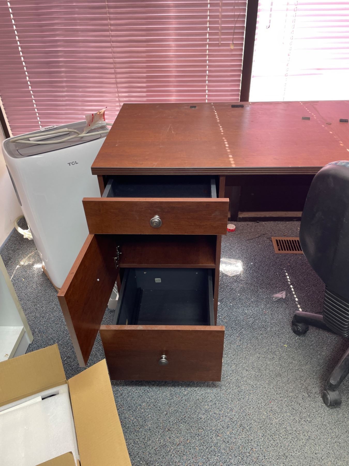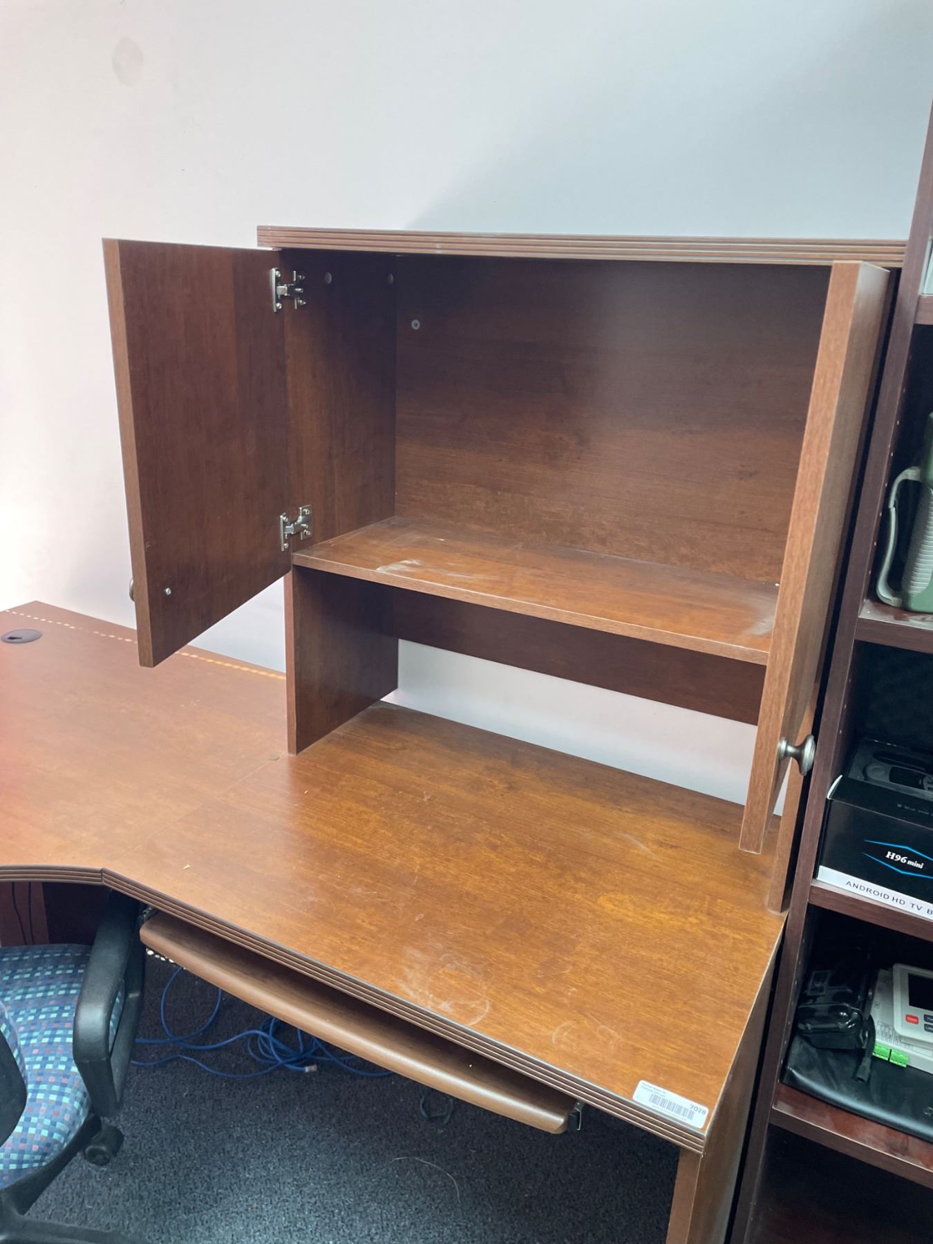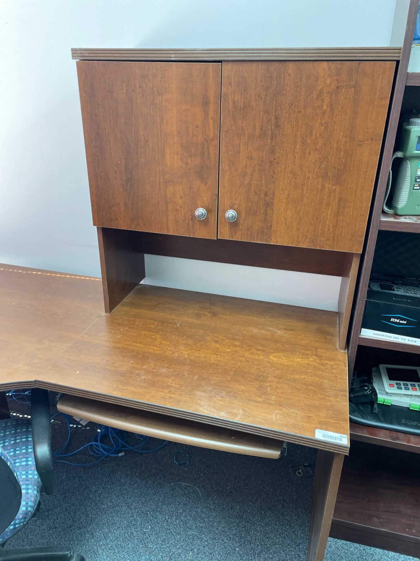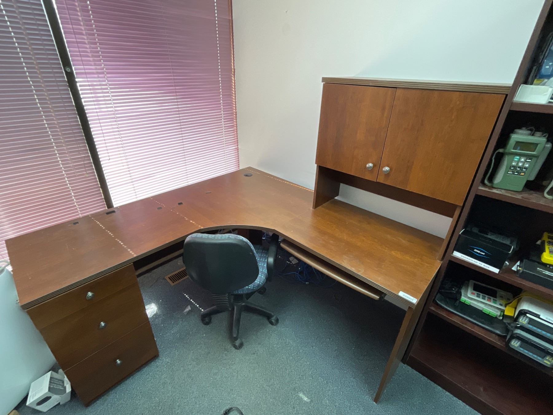 Lot 7028 L-Shaped Wooden Office Desk with Hutch and Storage Drawers