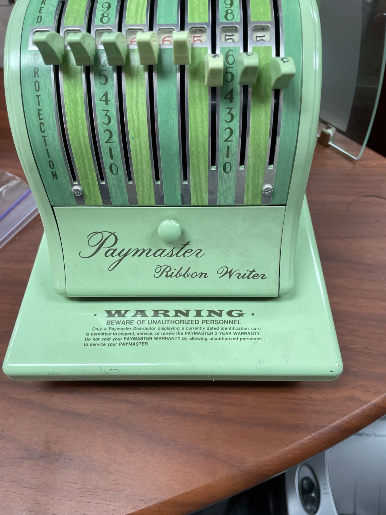 Lot 7089 Paymaster Ribbon Writer Check Protector in Green Finish