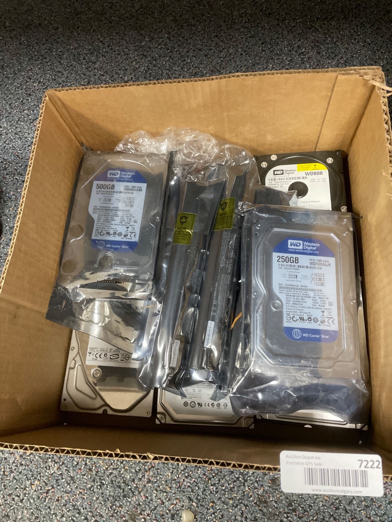 Lot 7222 Lot of Assorted Western Digital Hard Drives: Various Models and Capacities (250GB, 500GB, 2TB)