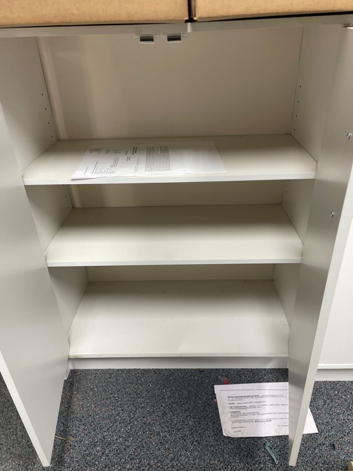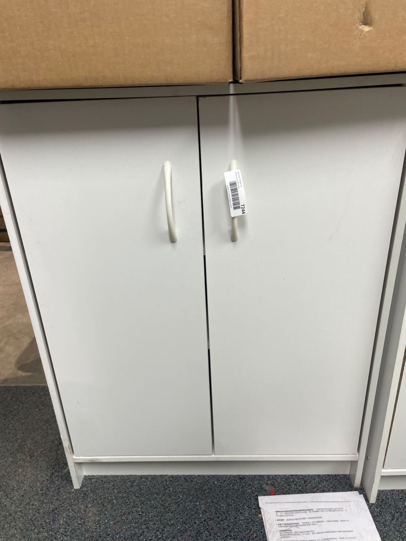 Lot 7244 24inx12inx31-1/2in White Three-Shelf Storage Cabinet with Double Doors