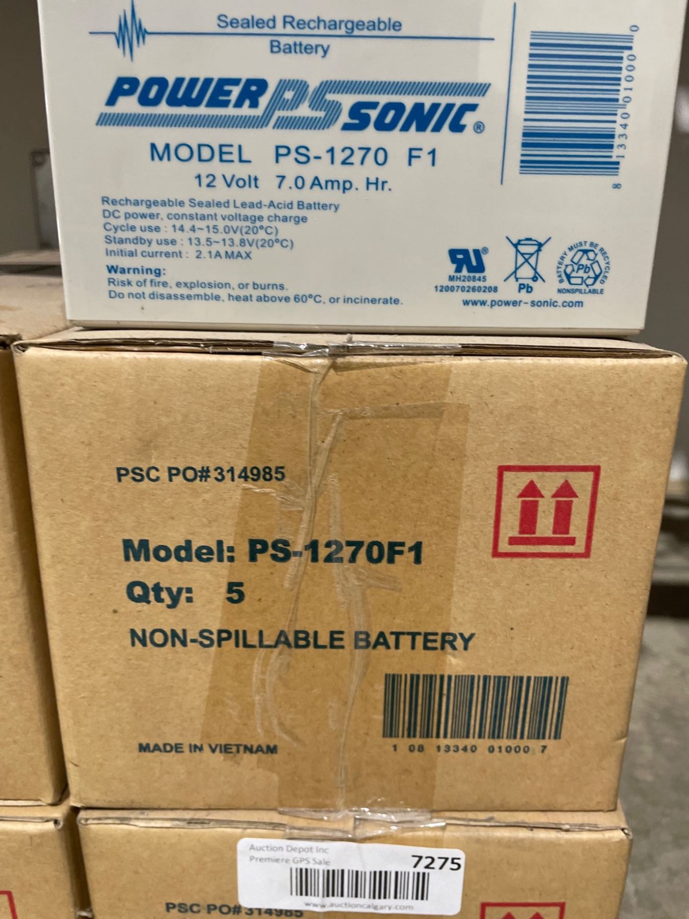 Lot 7273 Lot of 5 Power Sonic PS-1270 F1 12V 7.0Ah Rechargeable Battery