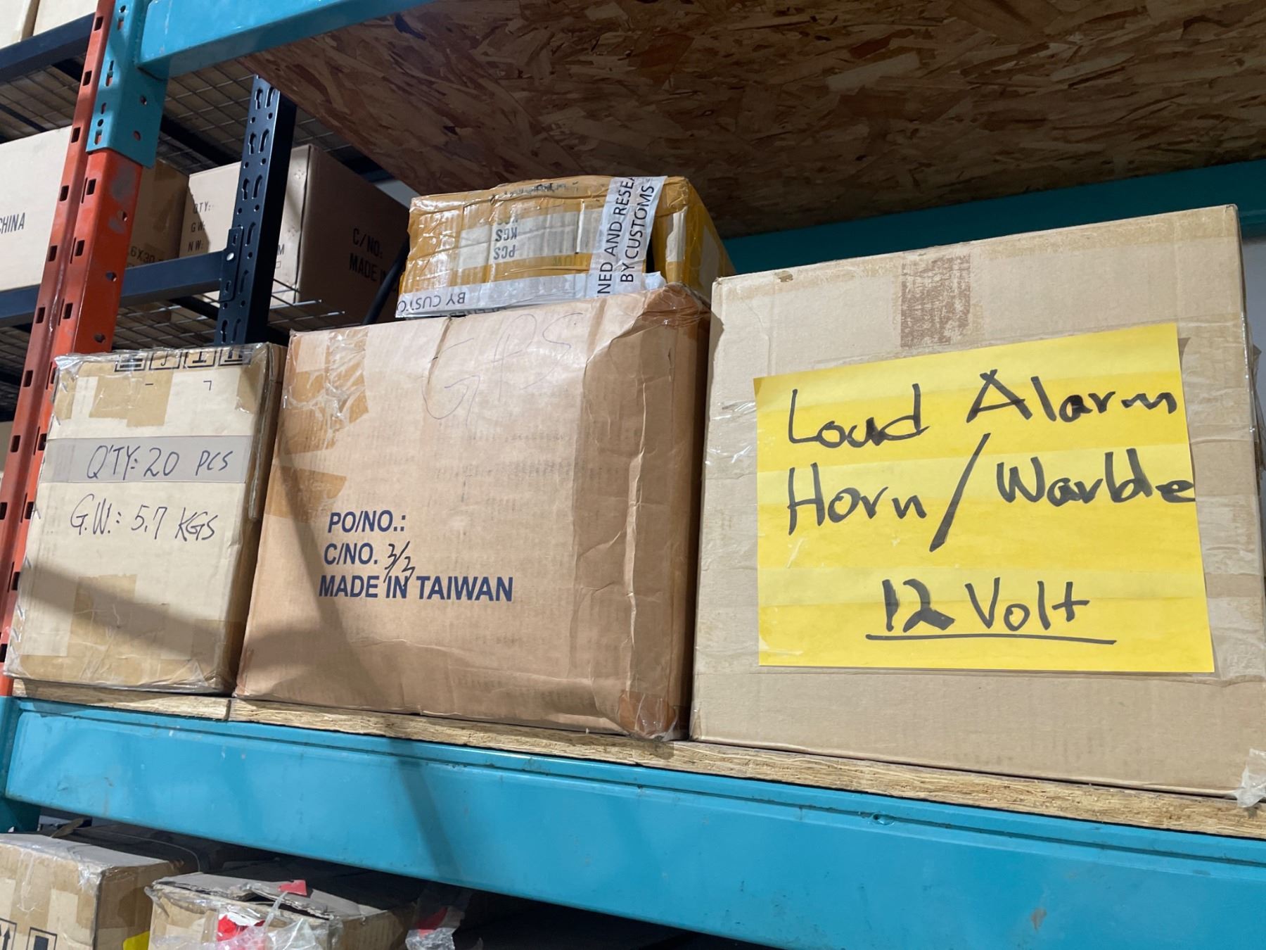 Lot of Assorted Various Items Including Loud Alarm Horns, Lights, and Miscellaneous Electronics