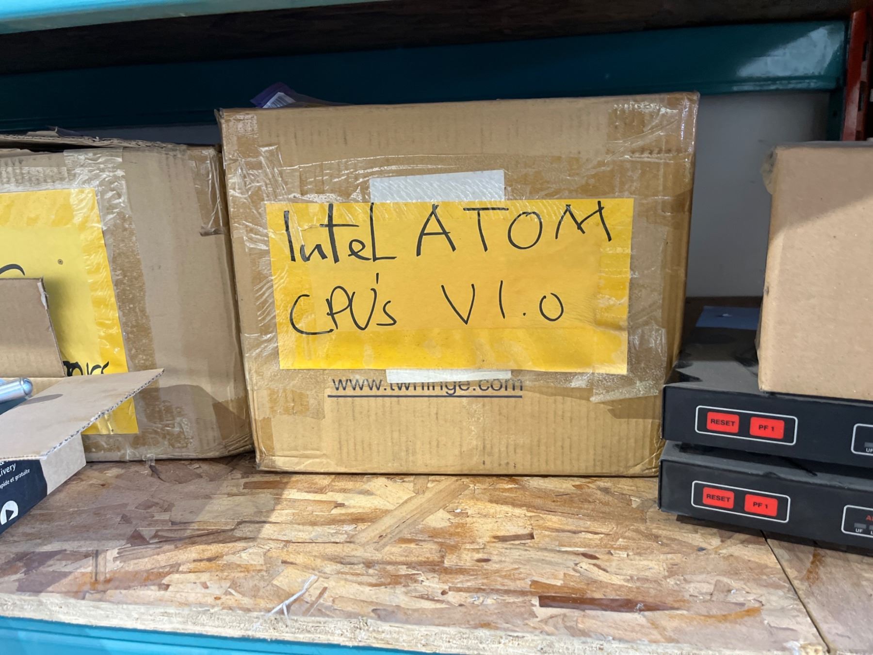 Lot of Assorted Electronic Components Including Intel Atom CPUs, Trailer Connectors, and Power Adapters