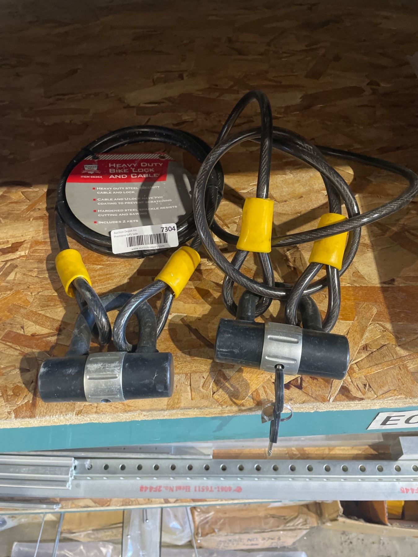Lot 7304 Lot of 2 Heavy Duty Steel Bike Lock and Cable