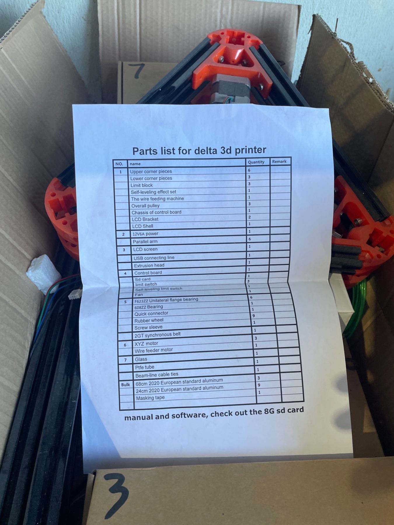 Lot of Parts for Delta 3D Printer Kit With Components and Parts ListÂ