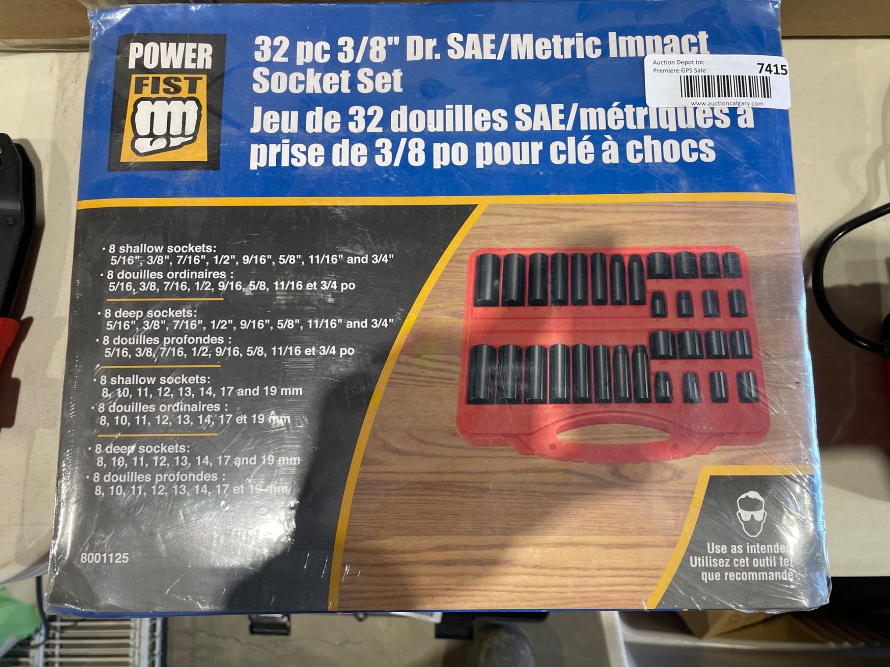 Lot 7415 Power Fist 32 Pc 3/8 In. Drive SAE/Metric Impact Socket Set