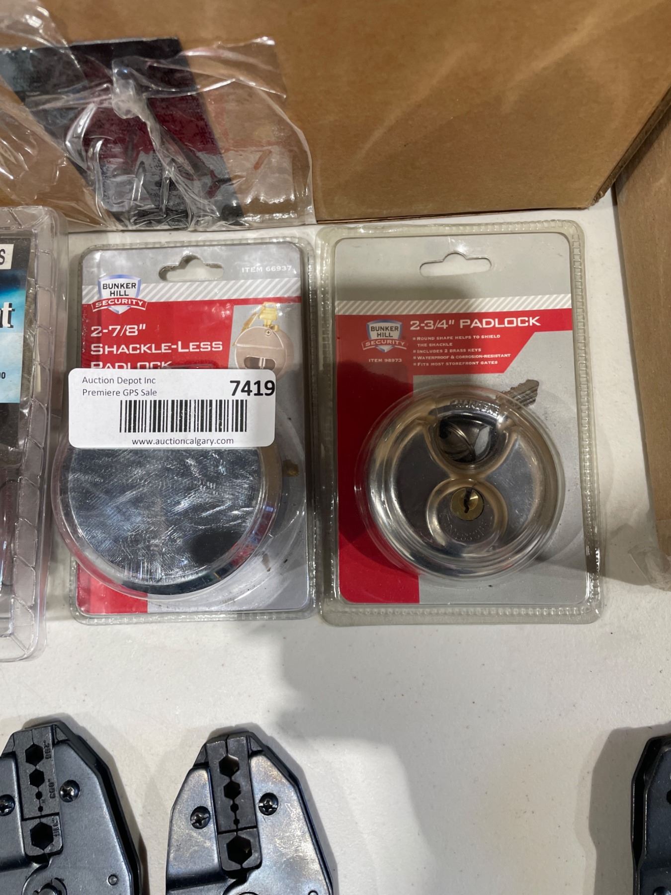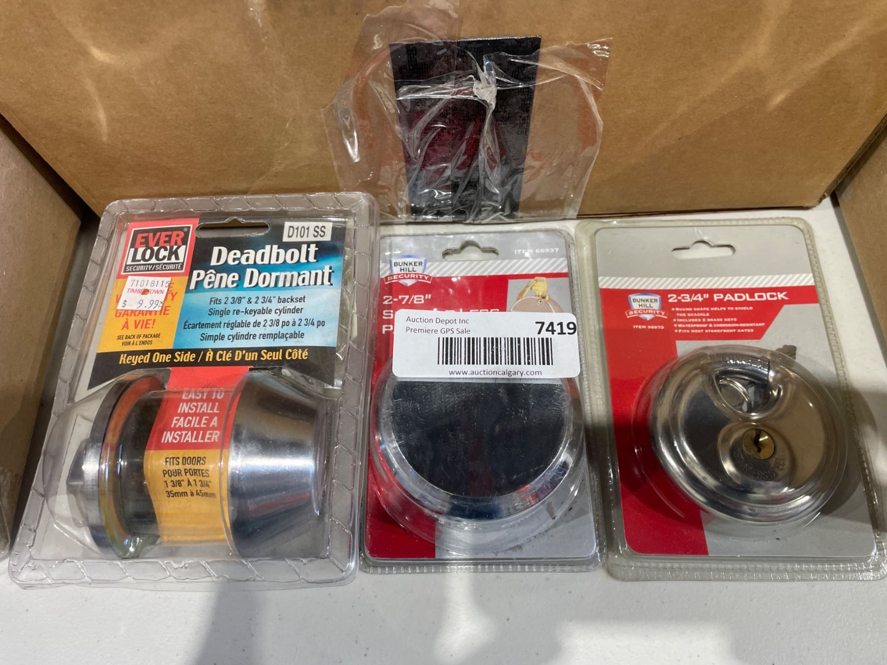 Lot 7419 Lot of 3 Security Hardware Items: Deadbolt, Shackle-Less Lock, and Padlock
