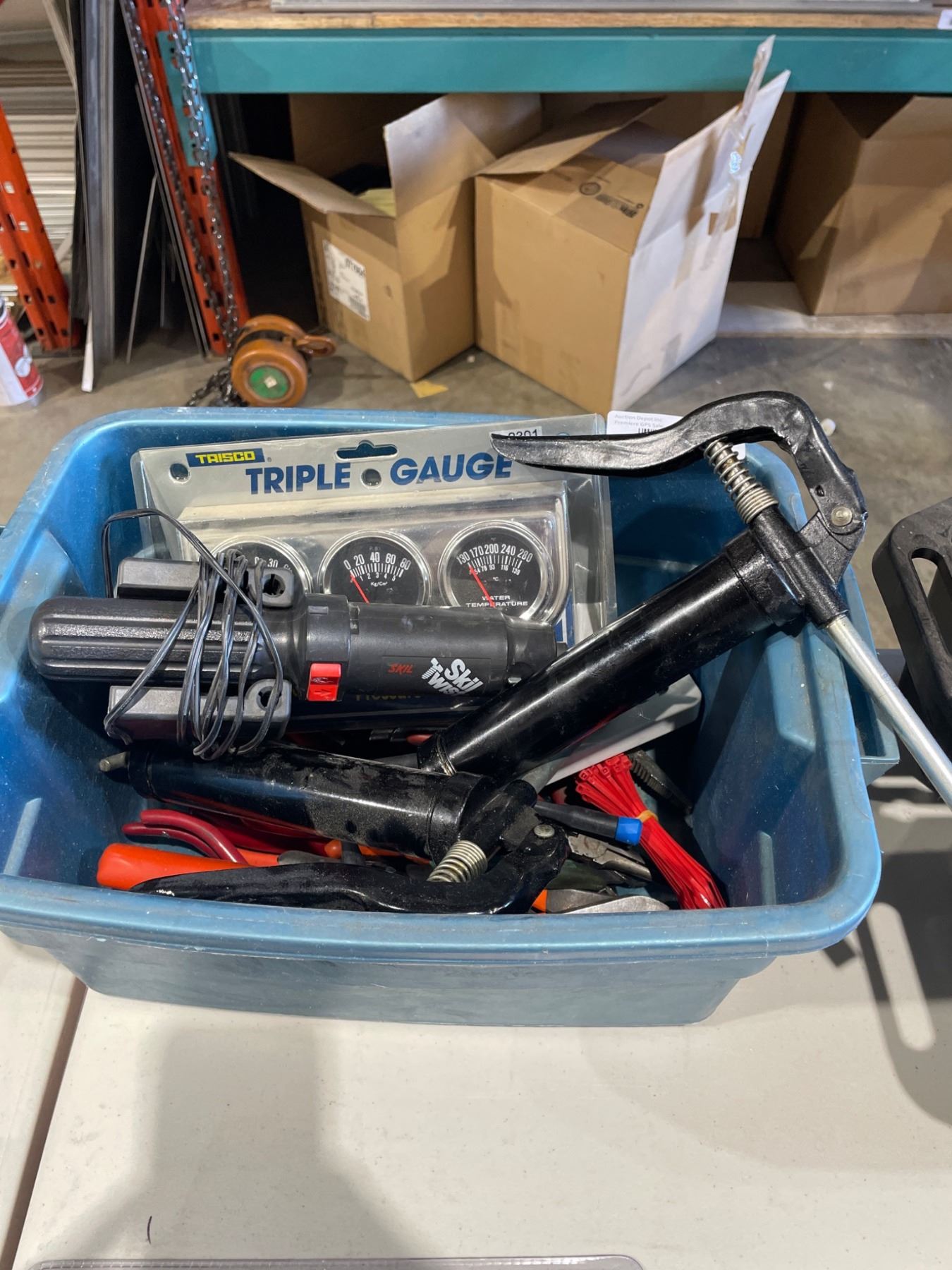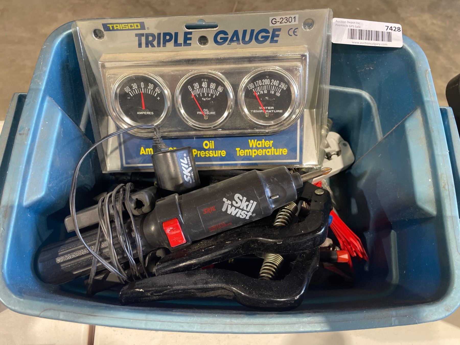 Lot 7428 Lot of Assorted Miscellaneous Automotive Tools, and Triple Gauge Set Model C-2301Â
