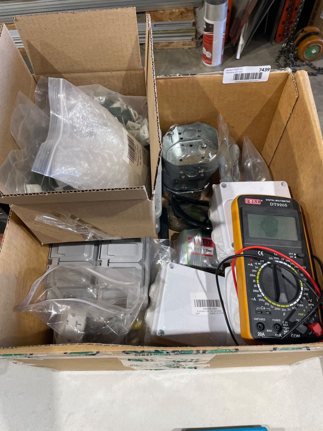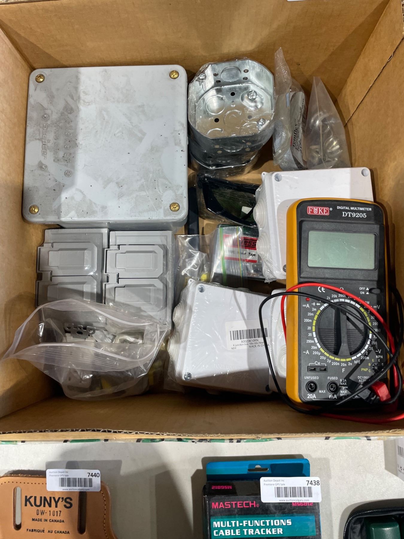 Lot 7439 Lot of Assorted Electrical Components, Enclosures, Multimeter, and Cable Tracer