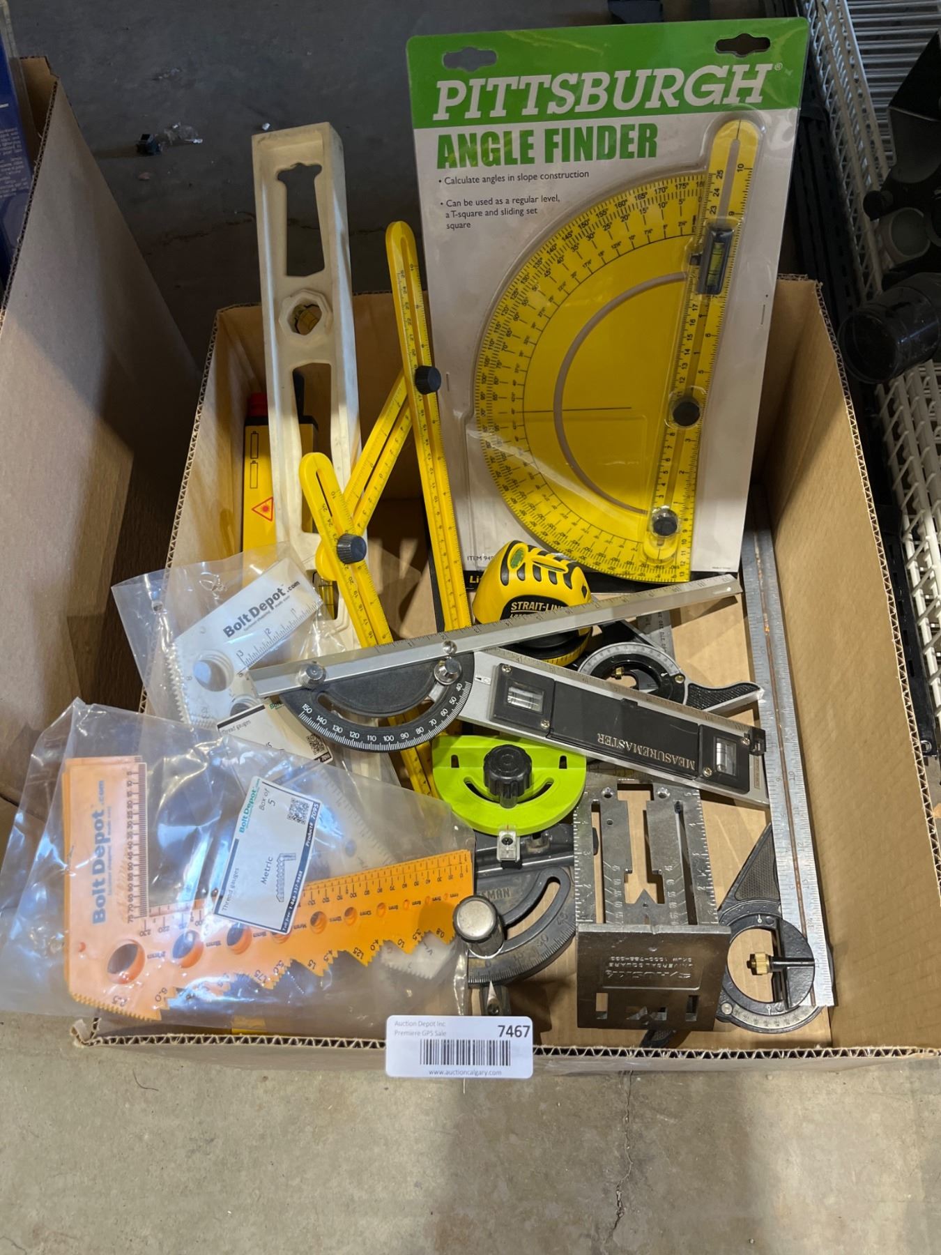 Lot 7467 Lot of Assorted Measuring Tools Including Pittsburgh Angle Finder and Assorted Items