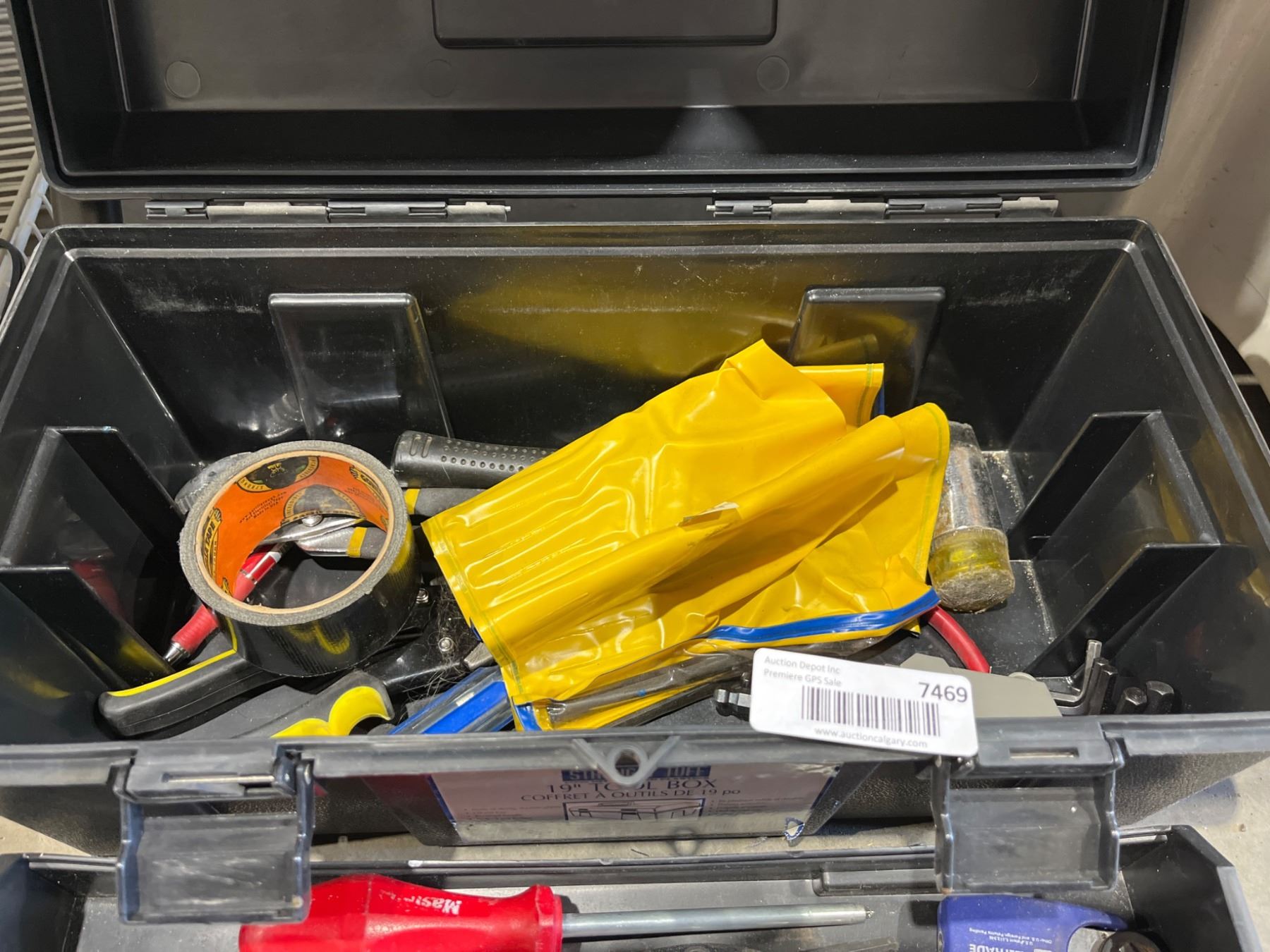 Lot 7469 Storage N' Stuff 19-Inch Tool Box With Miscellaneous Contents