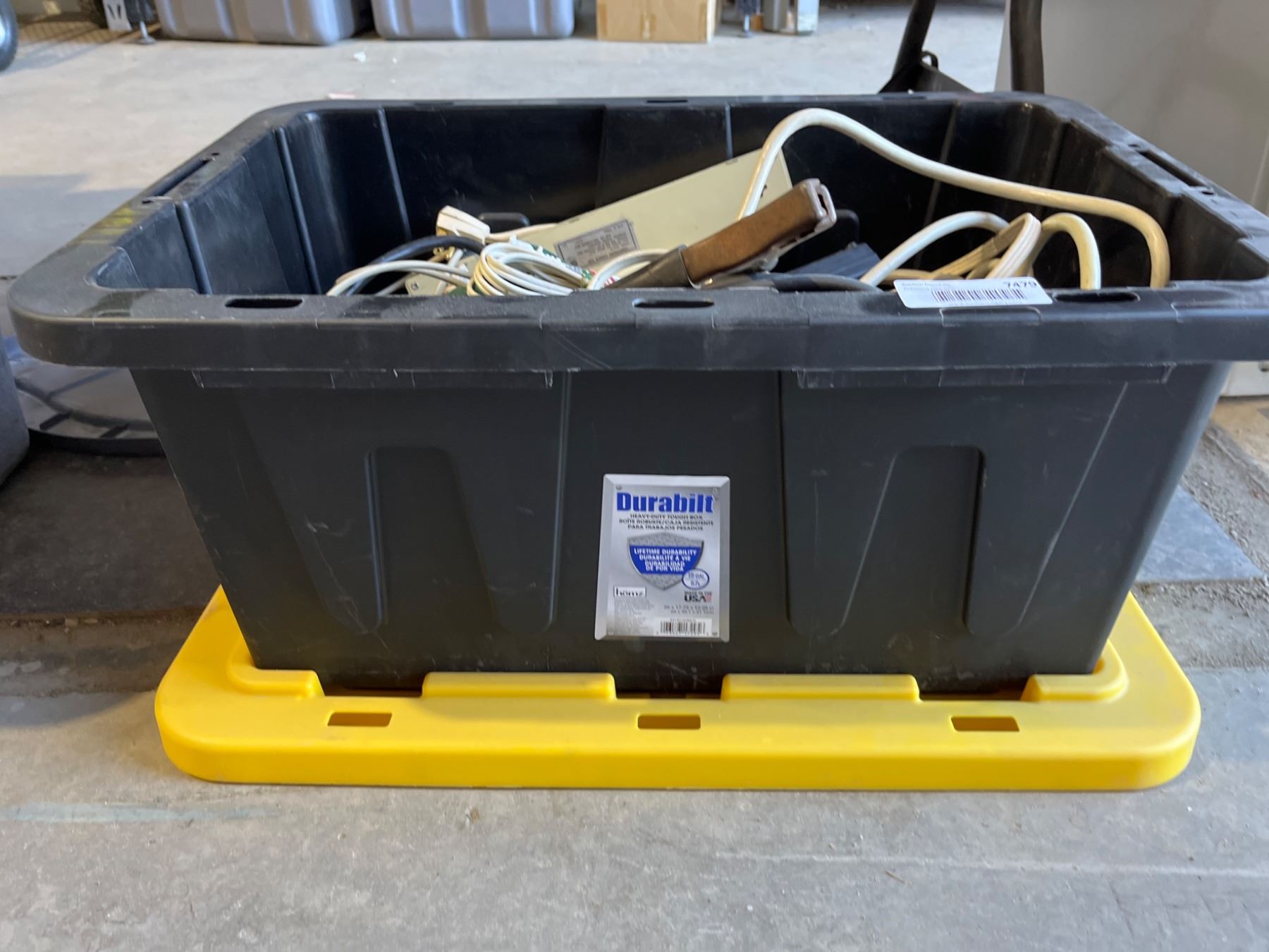 Durabilt Bin with Electrical Cables, Power Strips, and Connectors