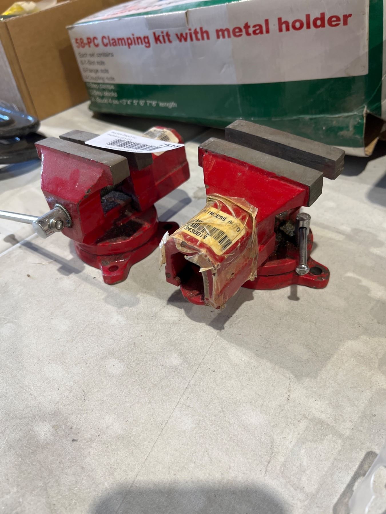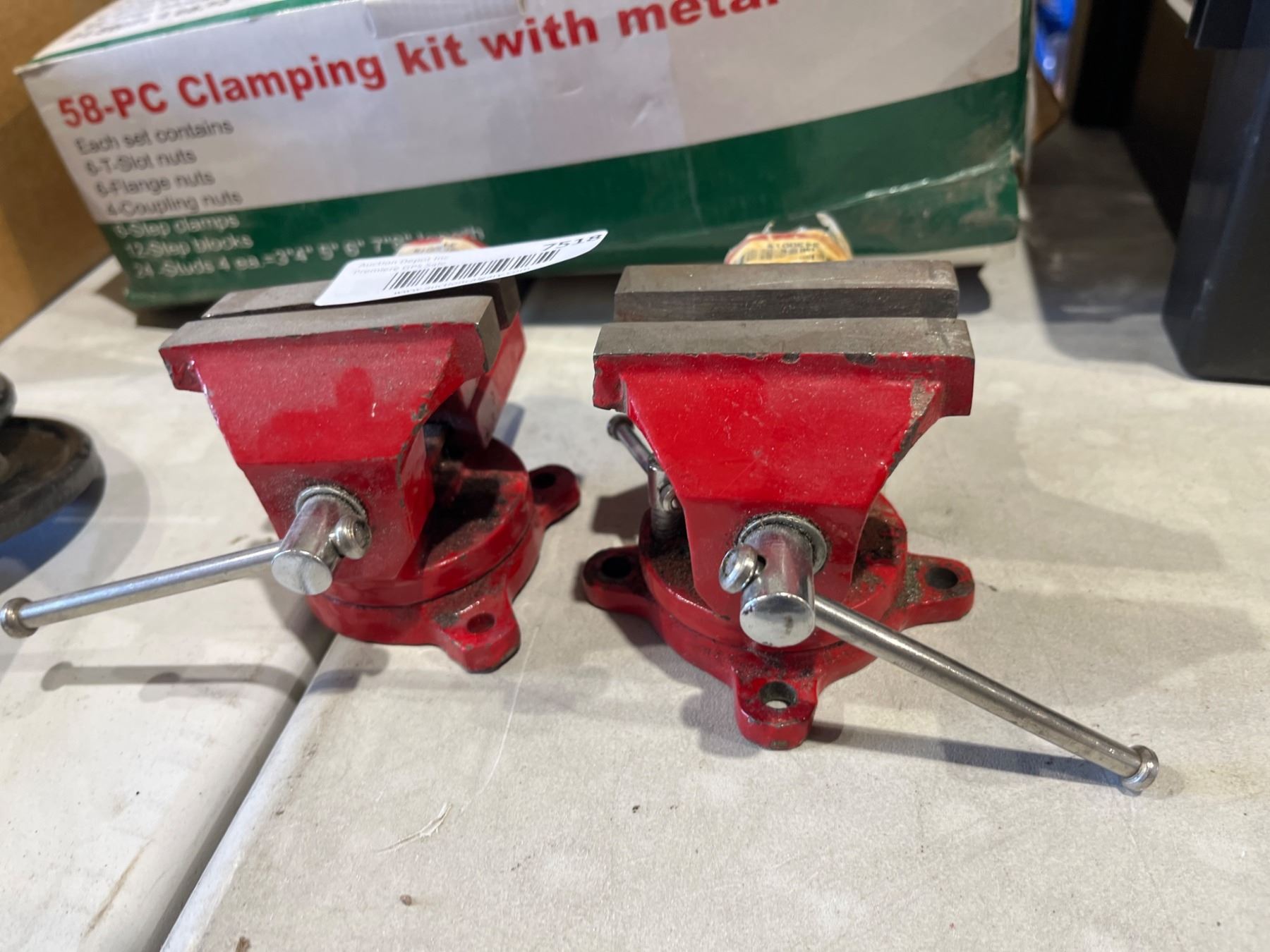 Lot 7518 Lot of 2 Adjustable Bench Vises with Rotating Bases, Red Finish