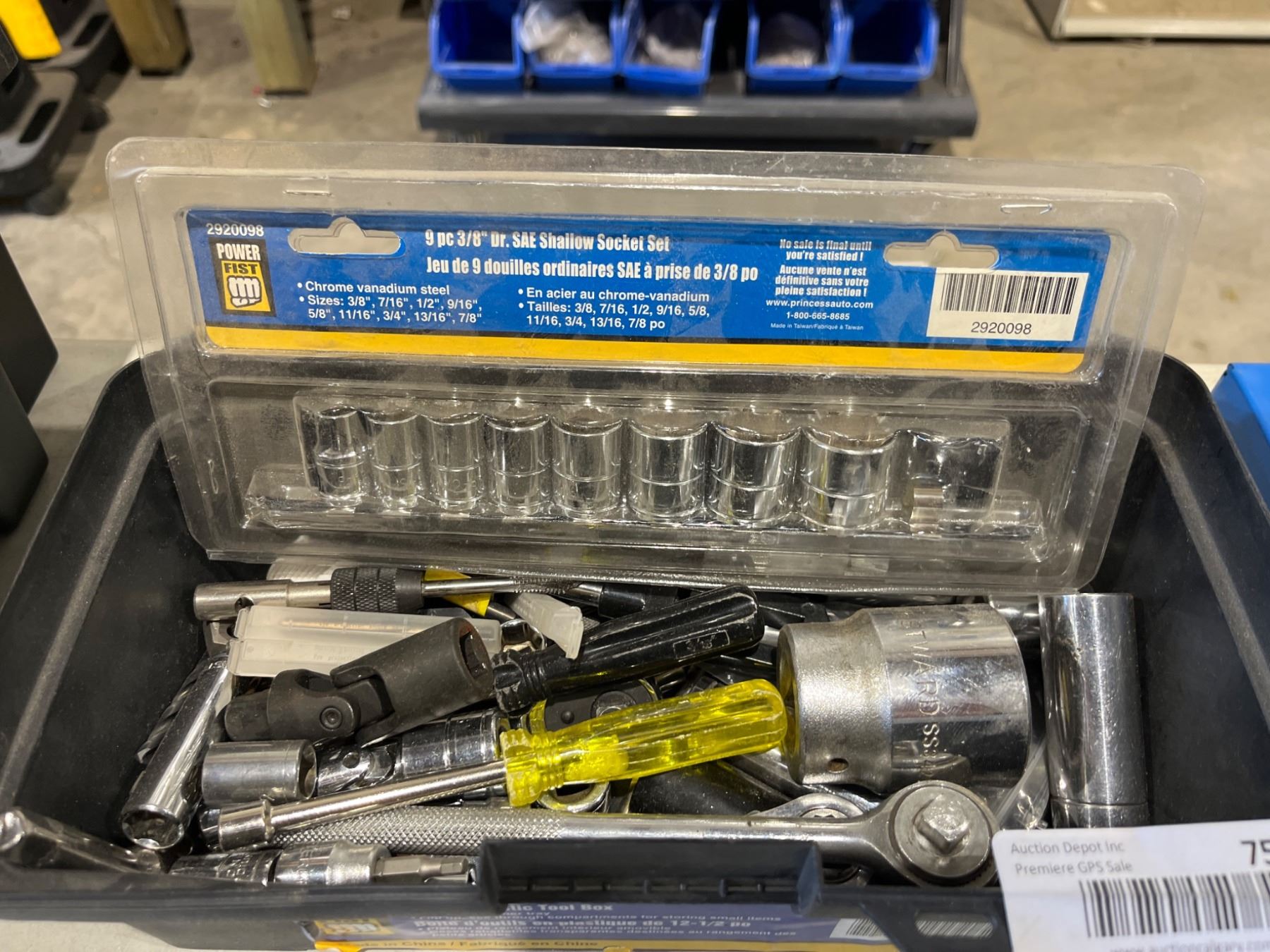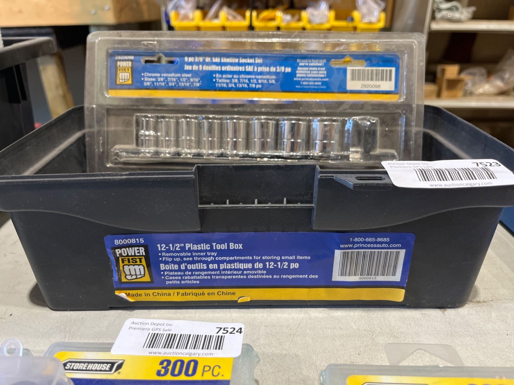 Lot 7523 Powerbuilt 9-Piece SAE Socket Set and 12-1/2 inch Tool Box