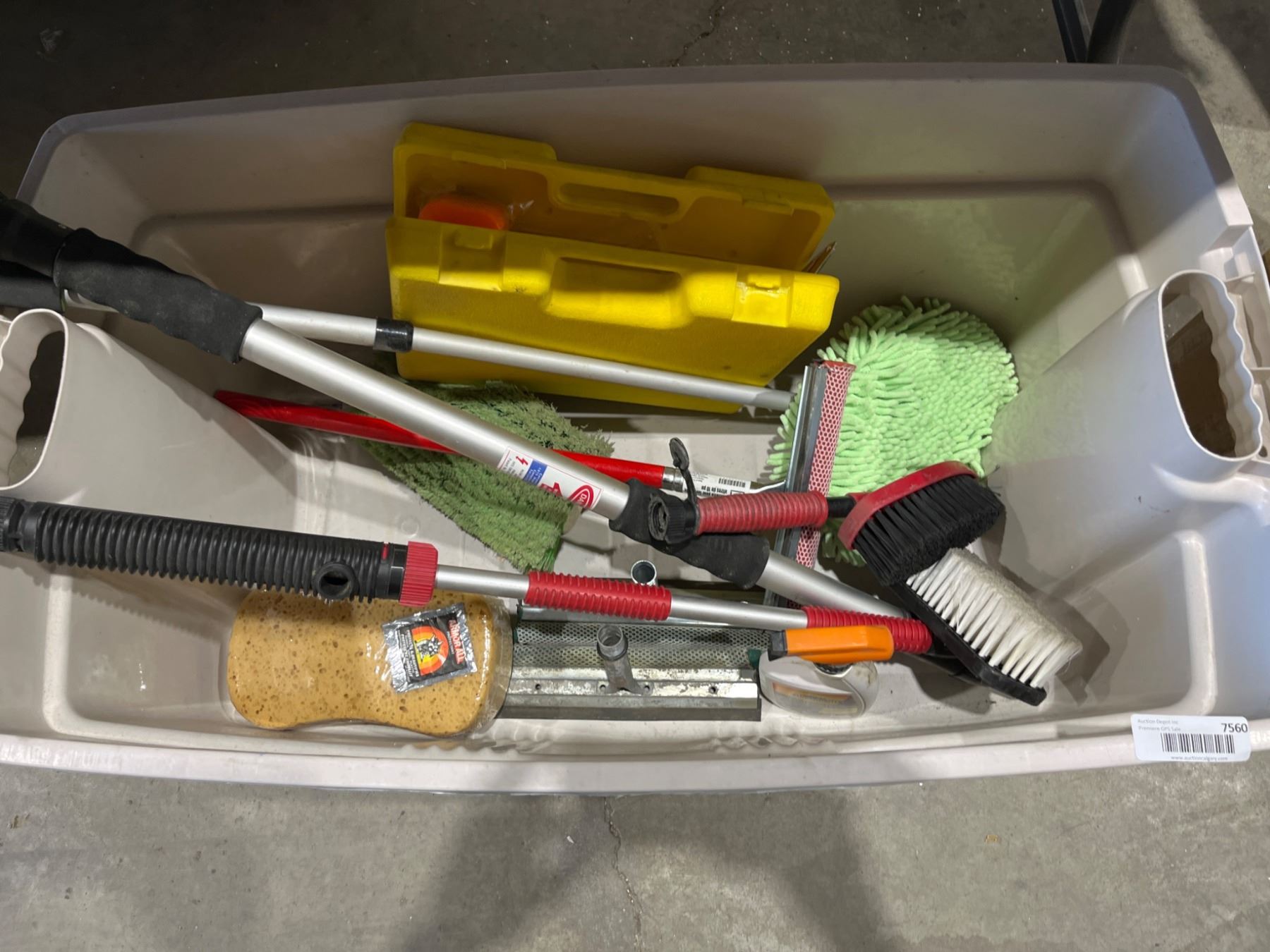 Lot 7560 Lot of Assorted Cleaning Tools Including Brushes, Sponges, and Handles