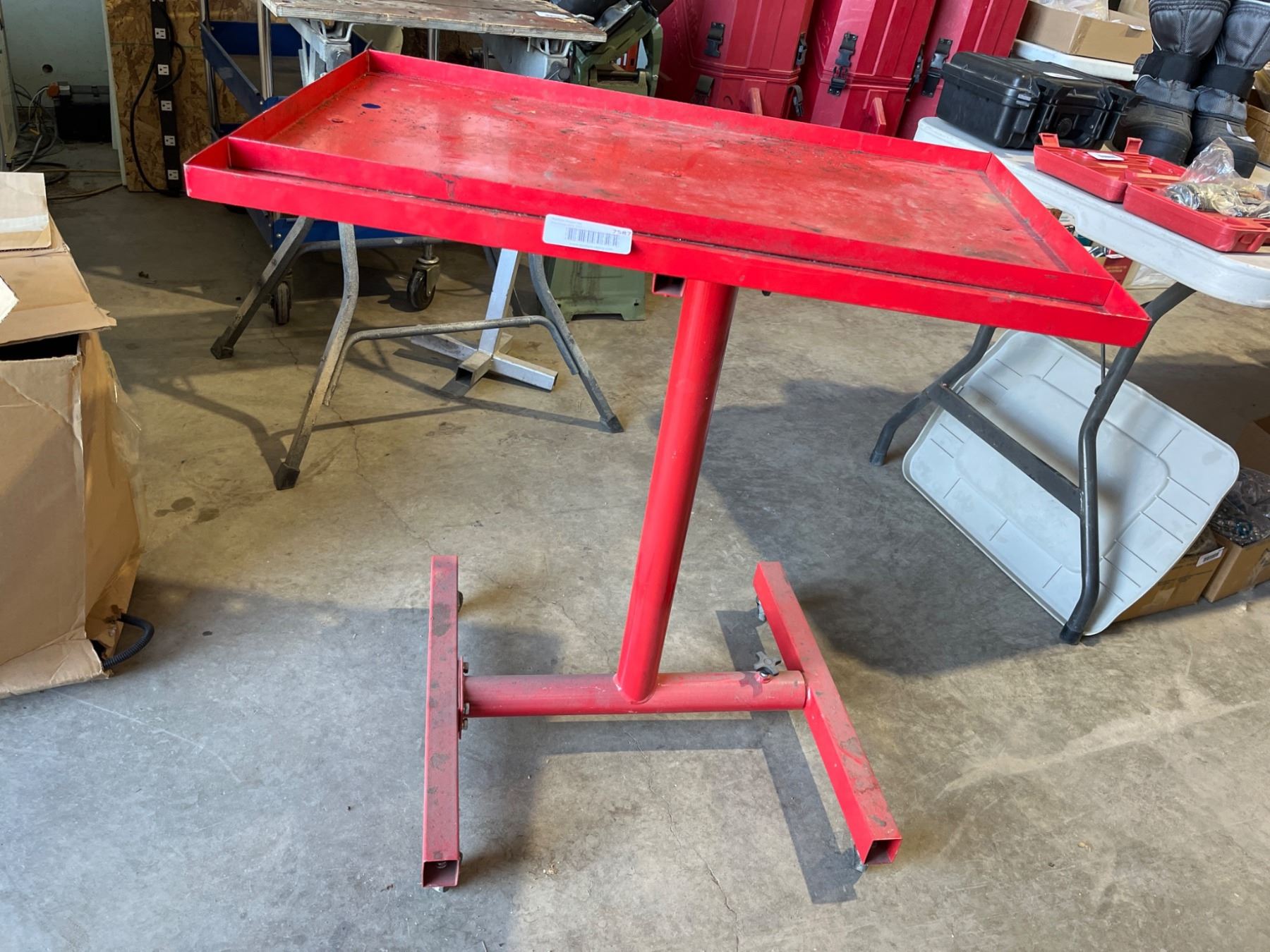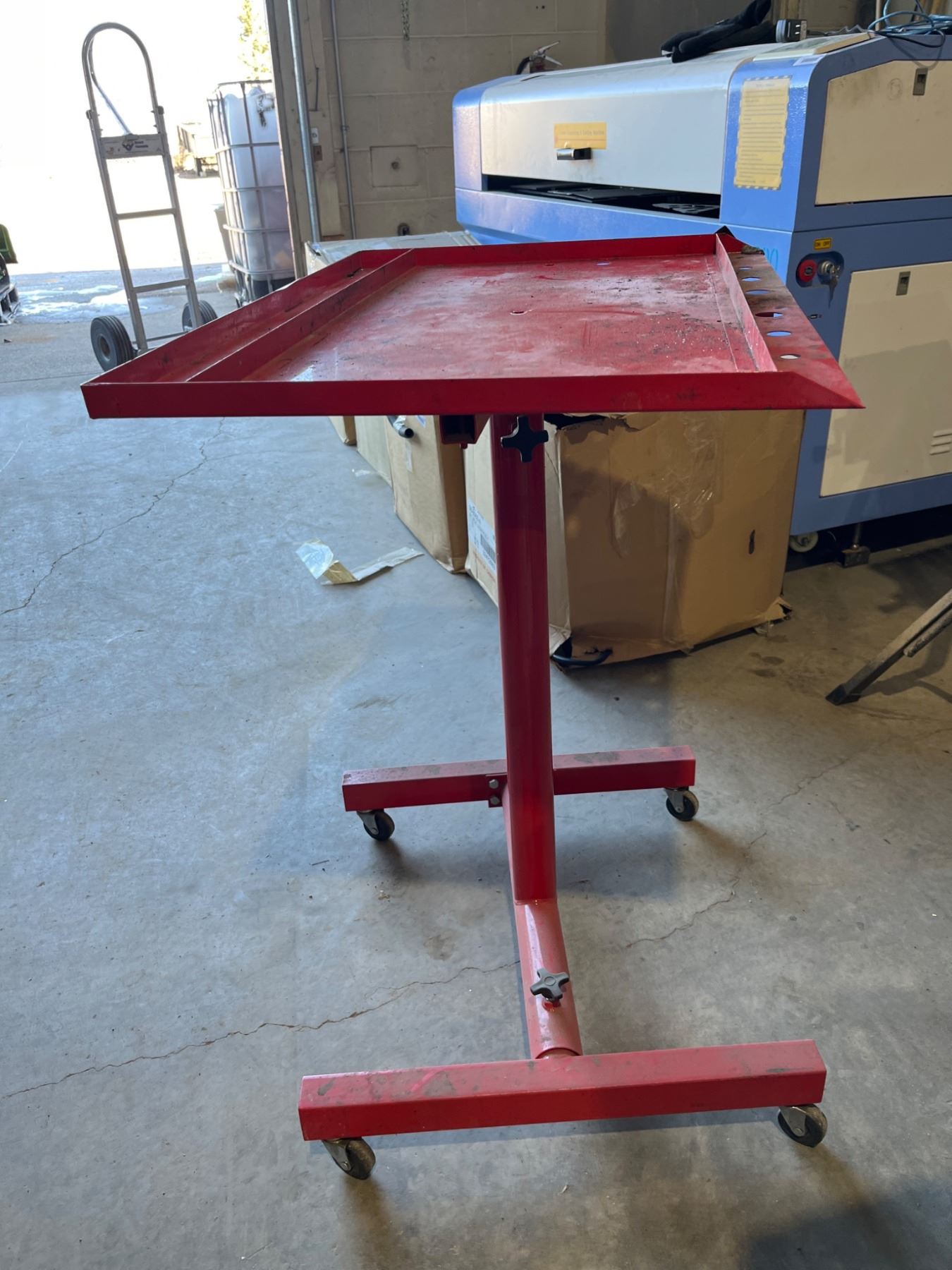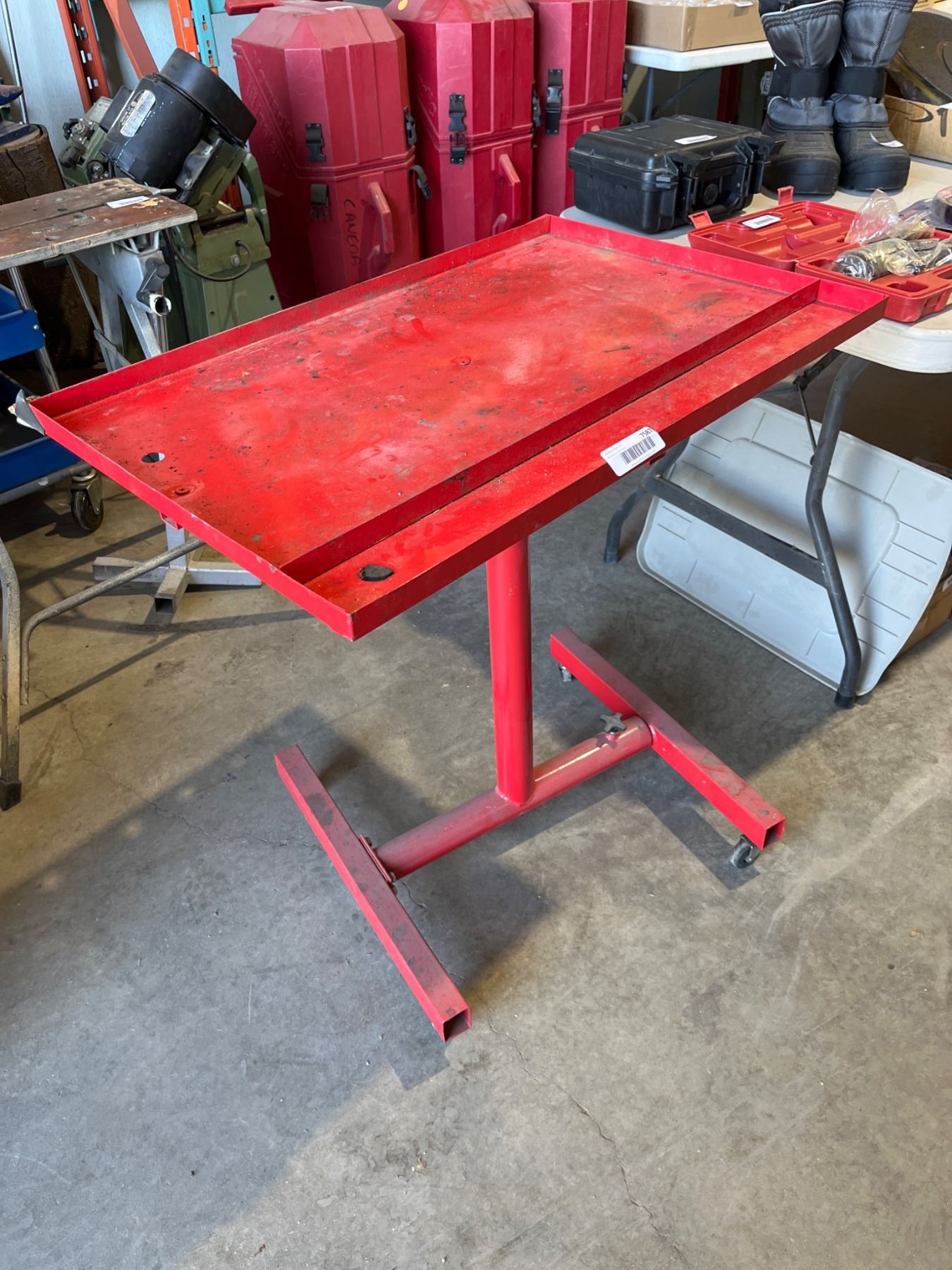 Lot 7587 Adjustable Rolling Red Mechanic’s Tray Table with Swivel Casters