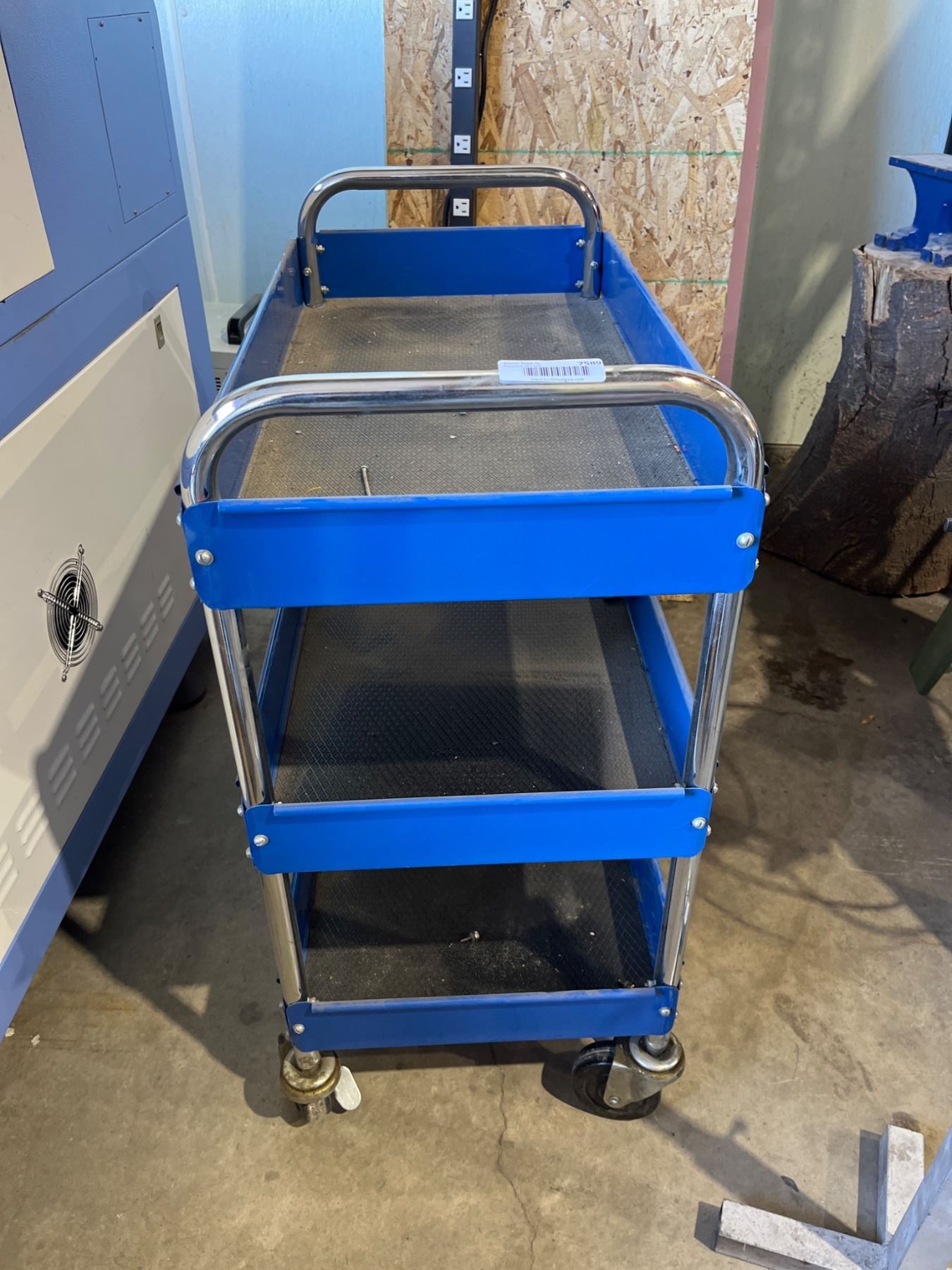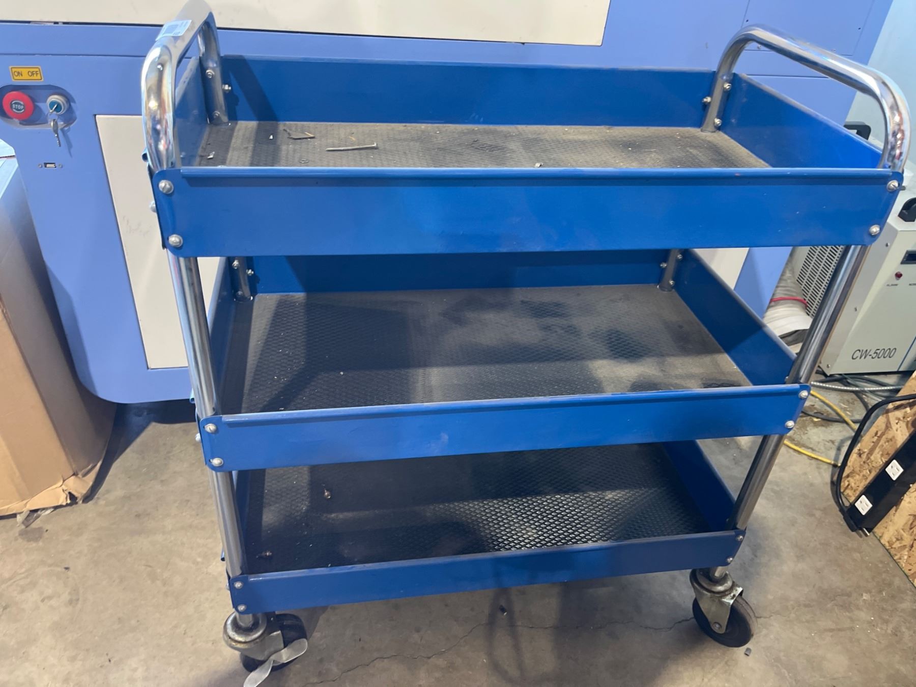 Lot 7589 Three-Tier Blue Metal Rolling Cart with Chrome Handles